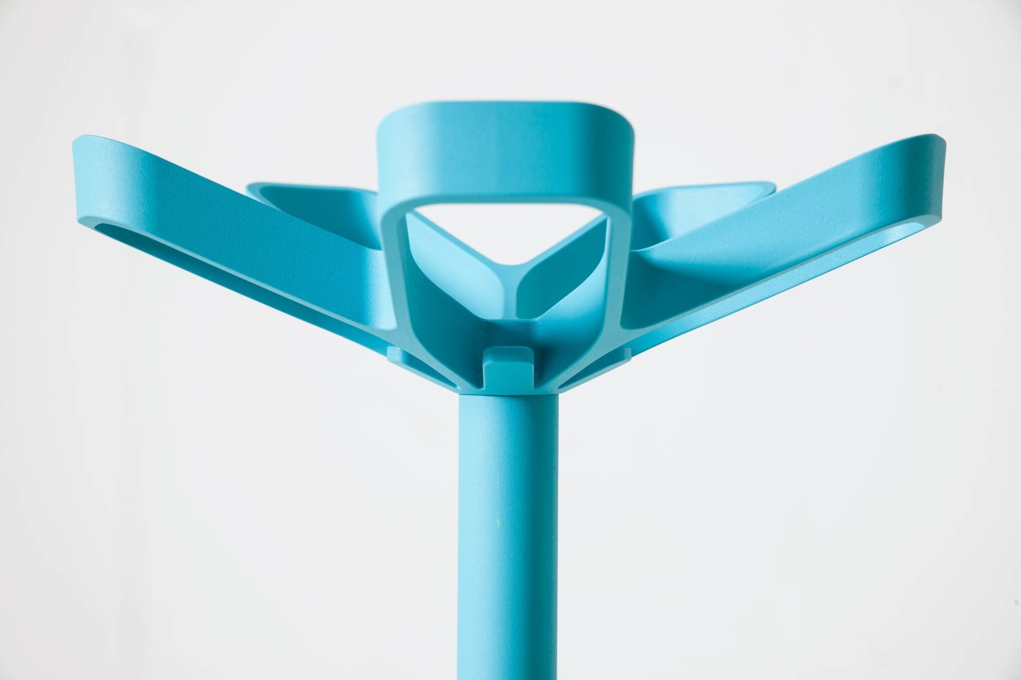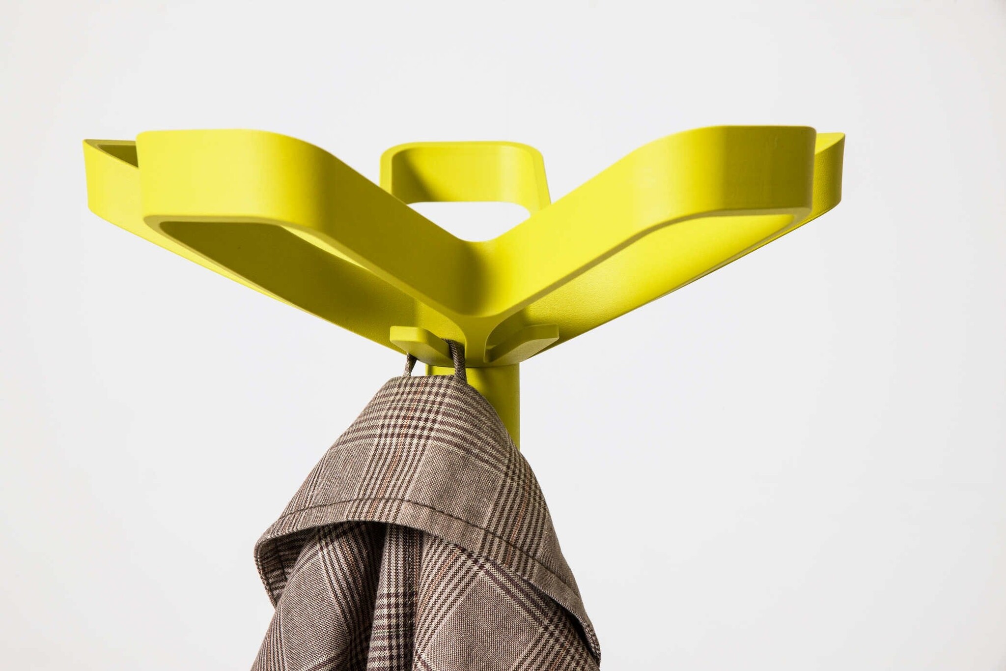 Model Flower kapstok vraagt met zijn kroon direct de aandacht. De kapstok is vrijstaand en biedt plaats aan minimaal tien jassen door middel van vijf grote en vijf kleine jashaken. De kroon is gemaakt van kunststof, de buis van staal en de voetplaat van gietijzer. Winnaar van de Interior Innovation Award in 2015.