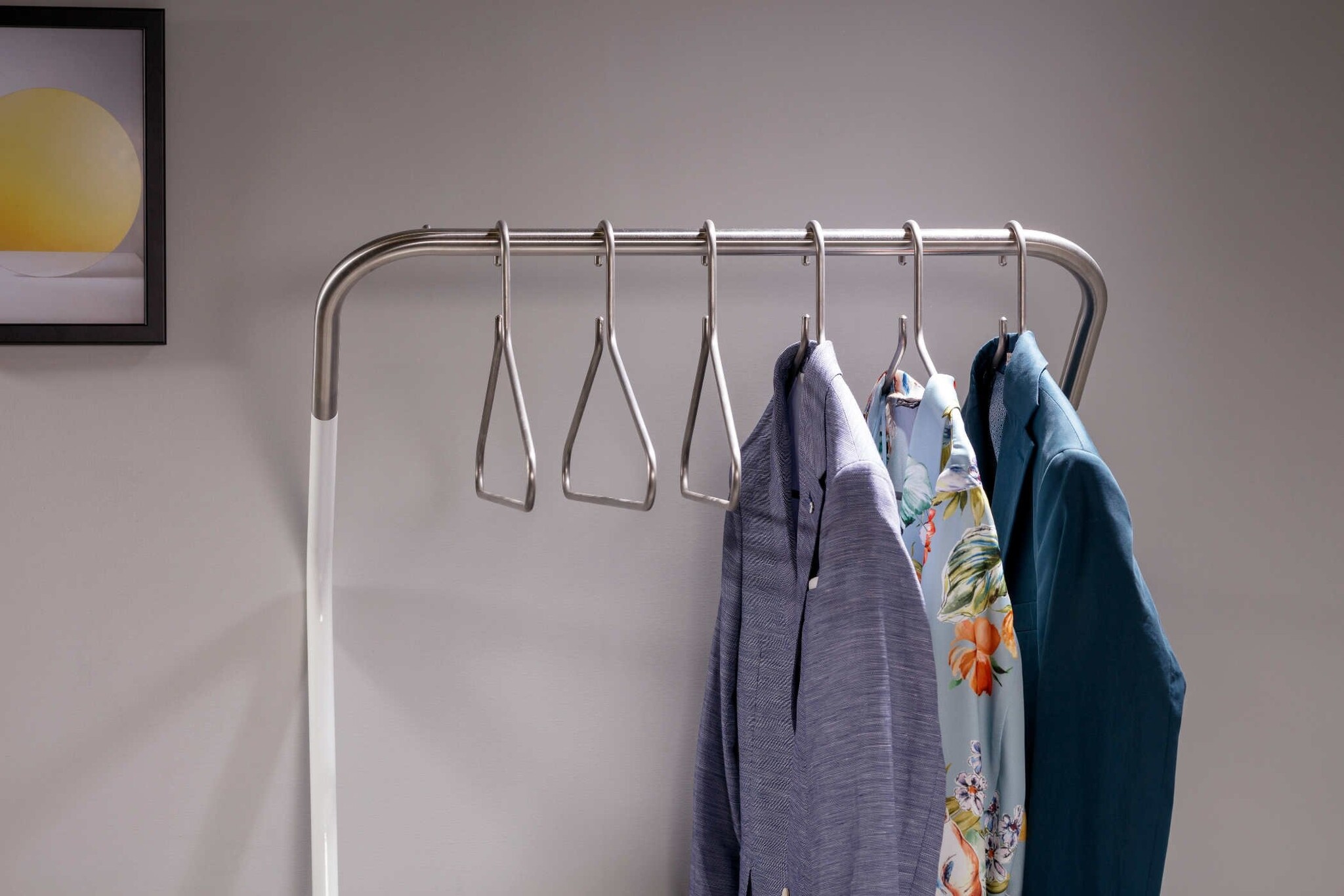Cascando Lean On heeft een eenvoudige vorm en een strakke afwerking. Het ontwerp van Van de Water neemt weinig ruimte in beslag en is speciaal ontworpen om tegen de muur te plaatsen. Het rek is geschikt voor speciale Lean On kledinghangers. De kledinghangers zijn van roestvrij staal en hebben een afmeting van B 42 cm x H 26 cm.