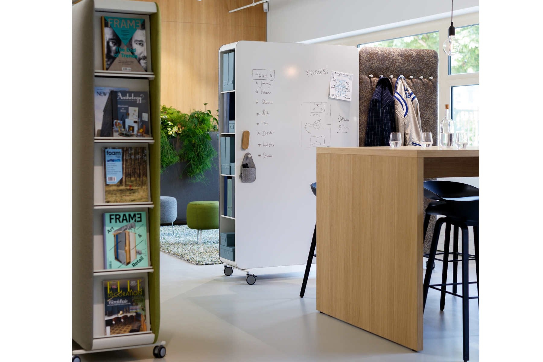Mooie en praktische accessoire voor op kantoor, mede door de opbergruimte die de scheidingswand biedt.