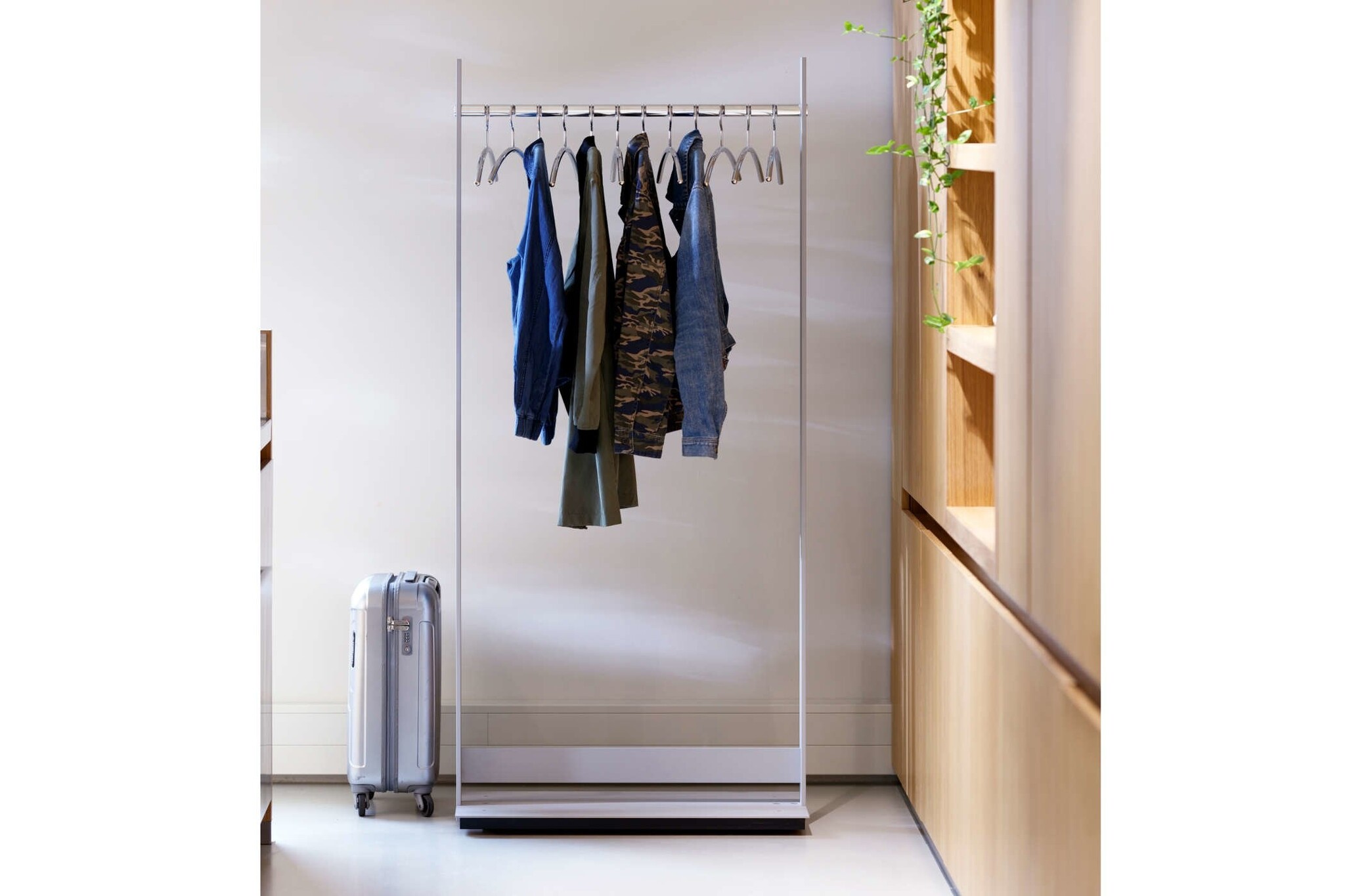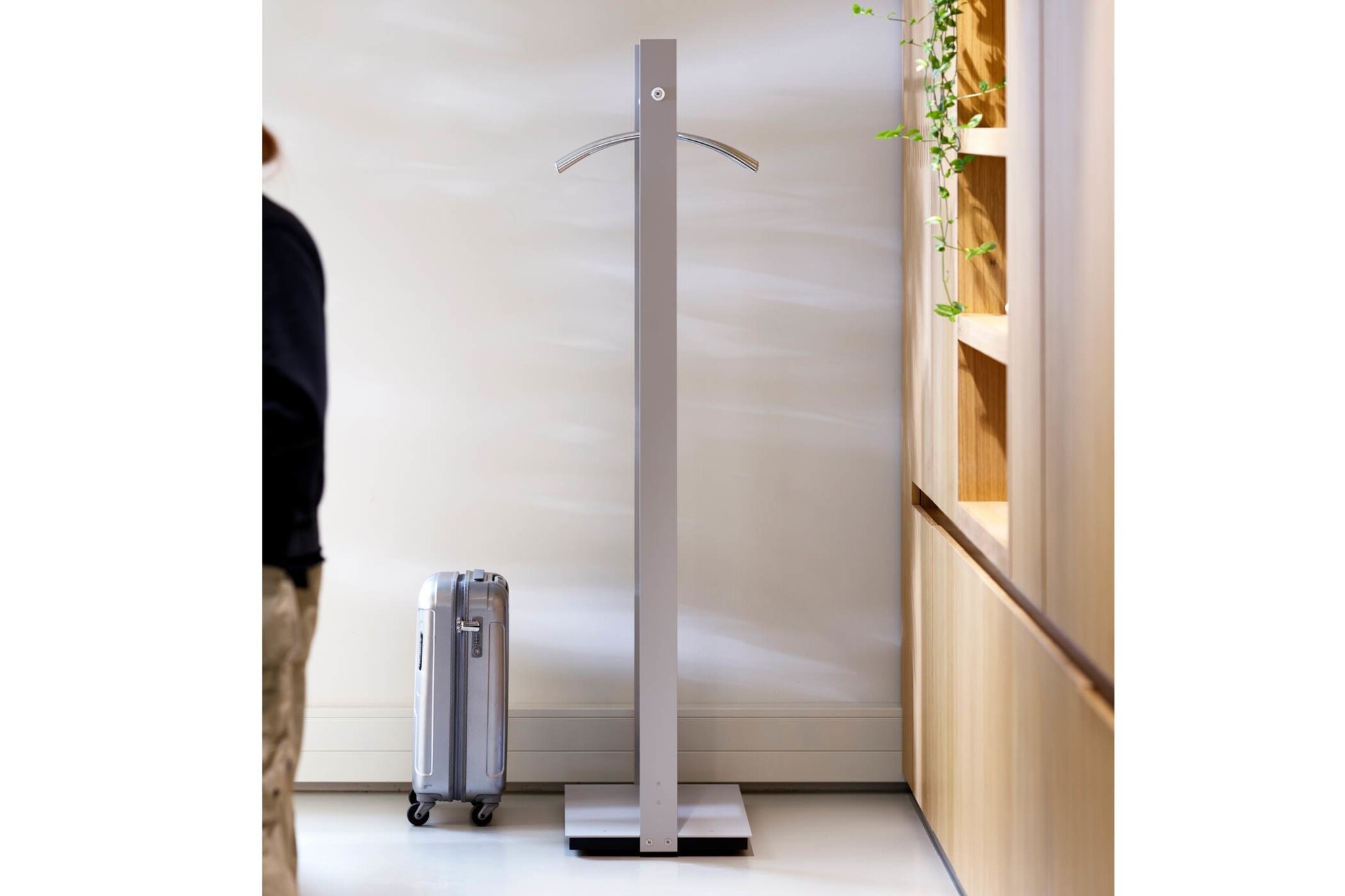Cascando Standtogether geeft elke entree iets extra's. De combinatie van gepolijste aluminium met aluminium zilver geeft de kapstok een hightech uitstraling. De Standtogether is leverbaar met voet maar ook met wieltjes. Ook is er de mogelijkheid om meerdere Standtogether's aan elkaar te koppelen. Op deze manier ontstaat er een stabiel systeem. De kledingroede is voorzien van twaalf frezen, waardoor de hangers keurig op hun plek blijven hangen.