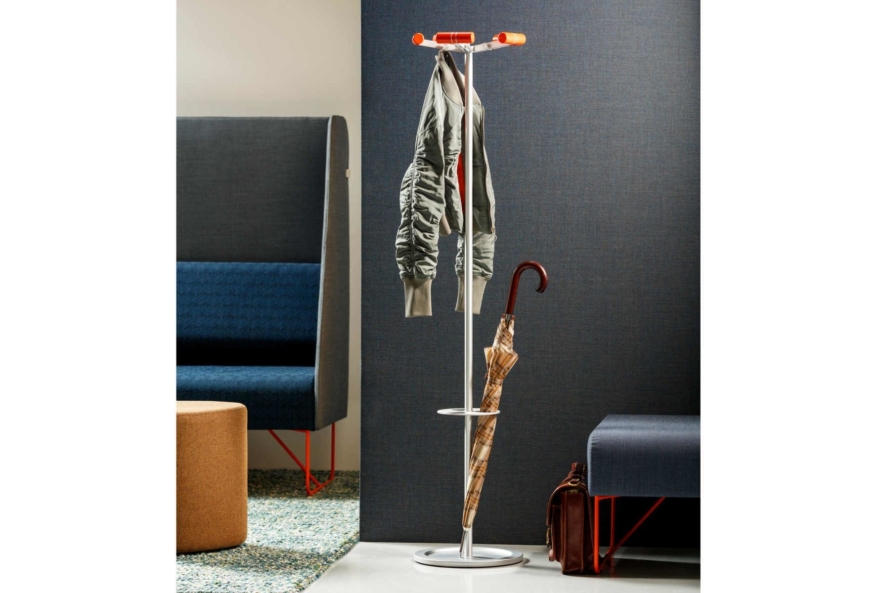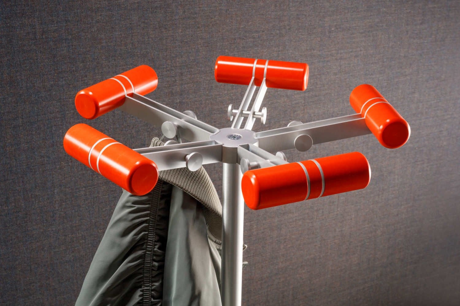 Cascando Velvet een vrijstaande kapstok met een hoogte van 170 cm x 30 cm (diameter voetstuk) De Cascando Velvet kapstok is van geanodiseerd aluminium. De kapstok is ontworpen door Marleen Valster.