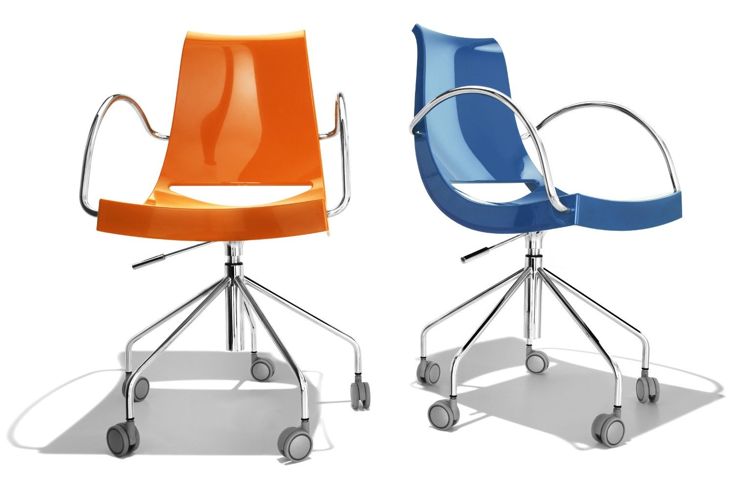 Een uitgebreide collectie stoelen met diverse varianten. Chiacchiera is verkrijgbaar als bureaustoel, barstoel, kantinestoel en wachtbank. Er zijn verschillende onderstellen mogelijk: 4-poots, kruisvoet op wielen, voetplaat met eventuele vloerbevestiging, met- en zonder armleggers en stapel- en koppelbaar. De kuip is standaard uitgevoerd in kunststof en is volledig transparant. Casprini Chiacchiera is een multifunctionele stoel leverbaar in meerdere kleuren. Het heeft een ergonomisch design waardoor het een zeer comfortabel stoel is.