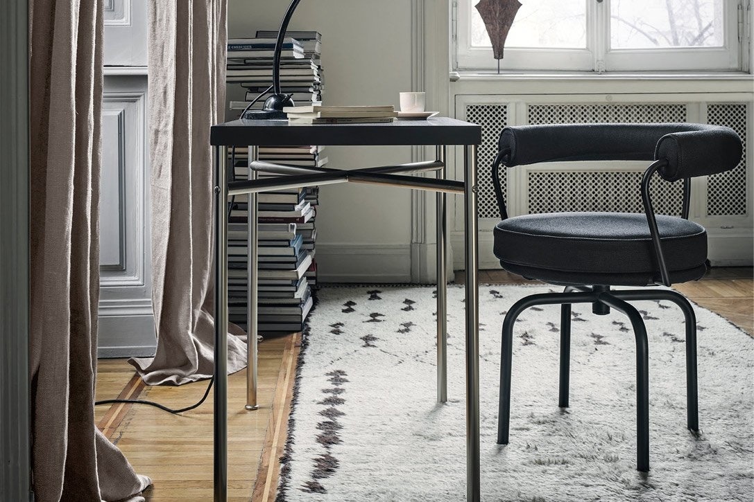 De Cassina LC 7 stoel is een bijzondere stoel door zijn vormgeving. Zo vormen de armleuningen en de rugleuning één geheel wat voor een fraaie uitstraling zorgt. Tevens is de stoel flexibel door zijn draaibare zitting. Ook te gebruiken voor buitenEr is ook een buitenversie van de Cassina LC 7 stoel. Zo is het frame van roestvrijstaal gemaakt en zijn de stoelen voorzien van speciale stoffen bekleding gevuld met polyestergaren. Op die manier creëert u bijzondere zitplekken in diverse buitenruimtes op bijvoorbeeld kantoren.
