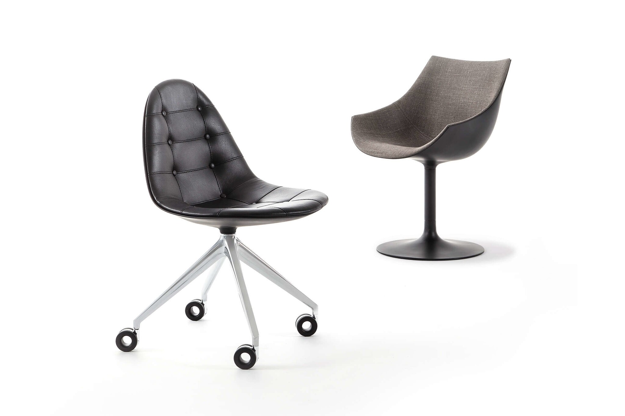 Bovendien is de collectie uitgebreid met een kolomvoet en kruisvoet (met of zonder wielen). Voor de zitting kunt u kiezen voor een gecapitonneerde of strakke versie. Zo heeft u voldoende keuze.