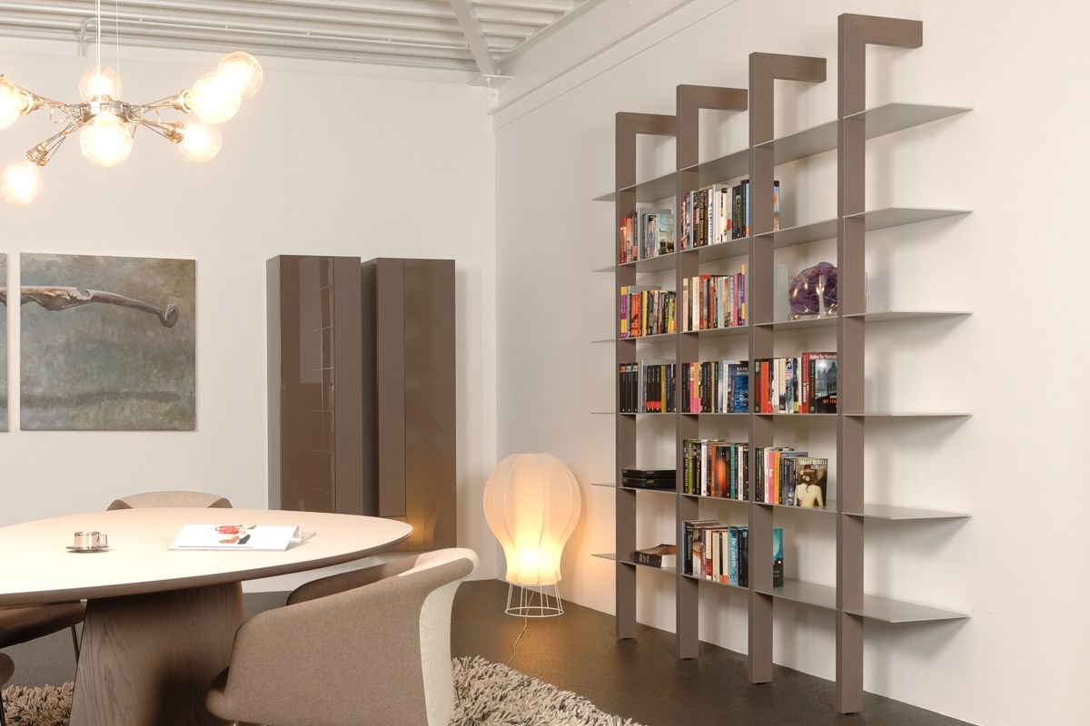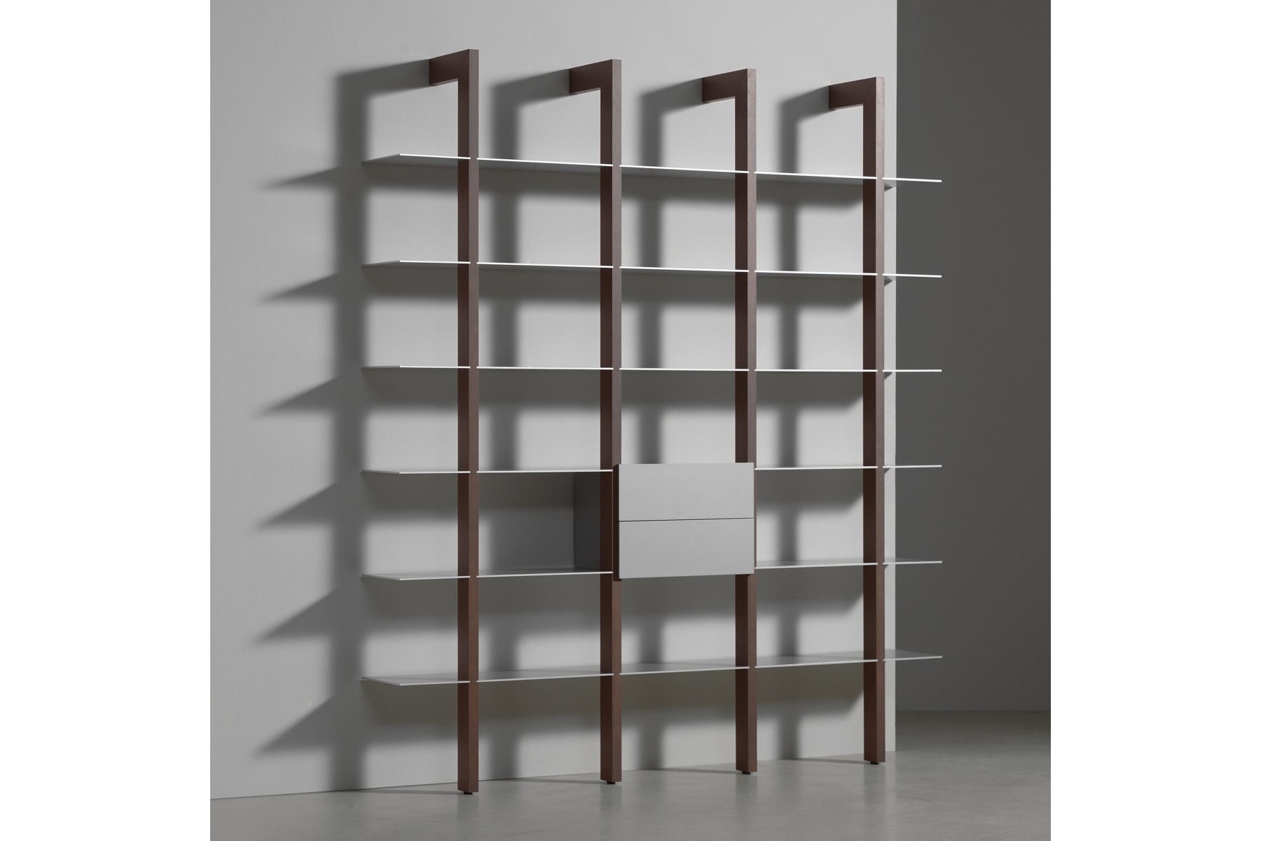 Castelijn Groove XS een design waarmee de ontwerper de uitdaging met de zwaartekracht aan ging. Ranke staanders tot 251 cm hoog met ingeschoven aluminium boekenplanken tot wel 269 cm lang en slechts 6 mm dik! Het resultaat is een aan Groove gerelateerde boekenkast met een zo open en luchtig karakter, dat enkel de staanders het krachtige stramien lijken te vormen.