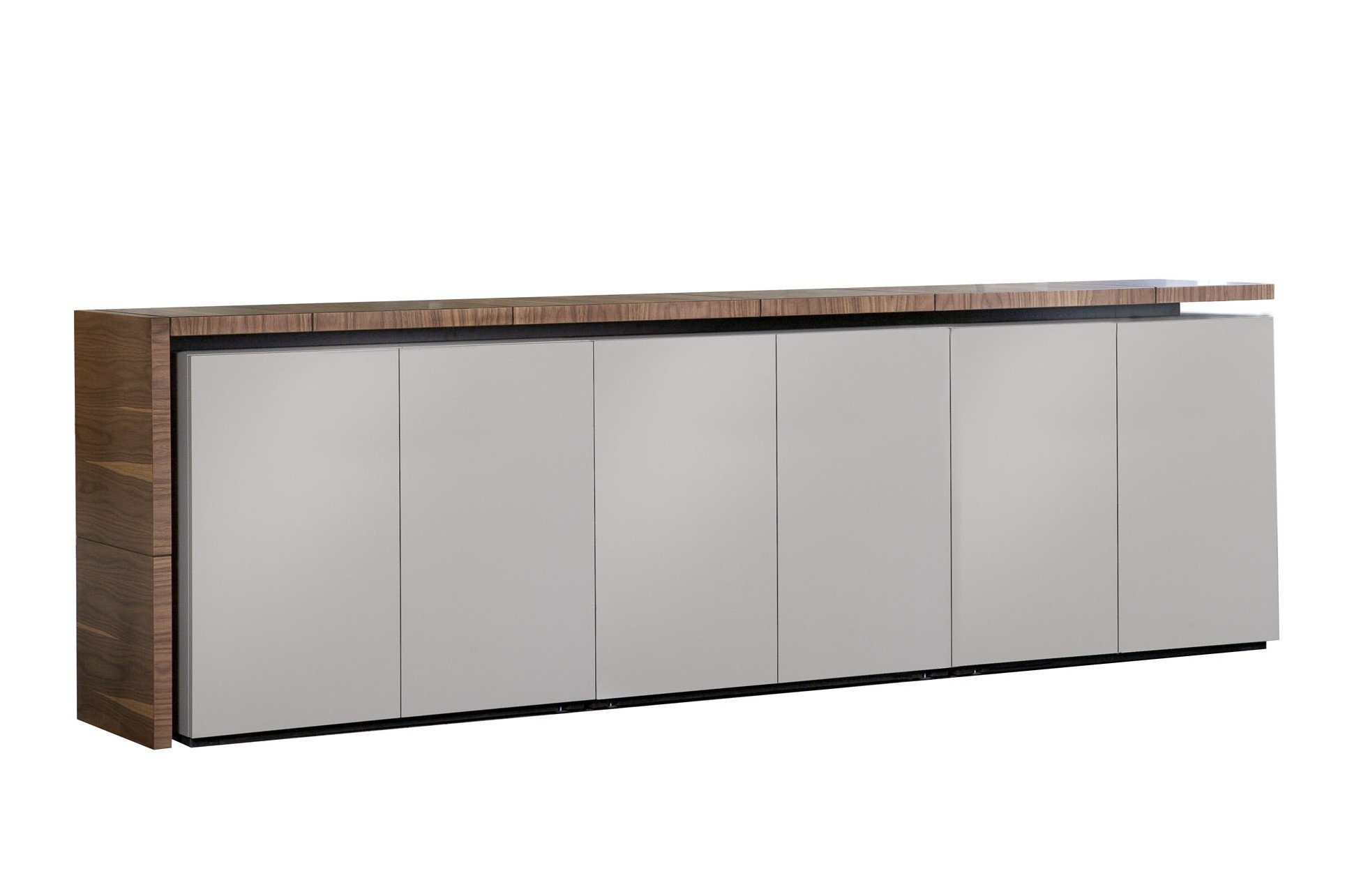 De kastwanden in de LV-collectie, zijn net als de sideboards en ladenblokken bij de bureaus nu allemaal greeploos en dus push-to-open geworden.