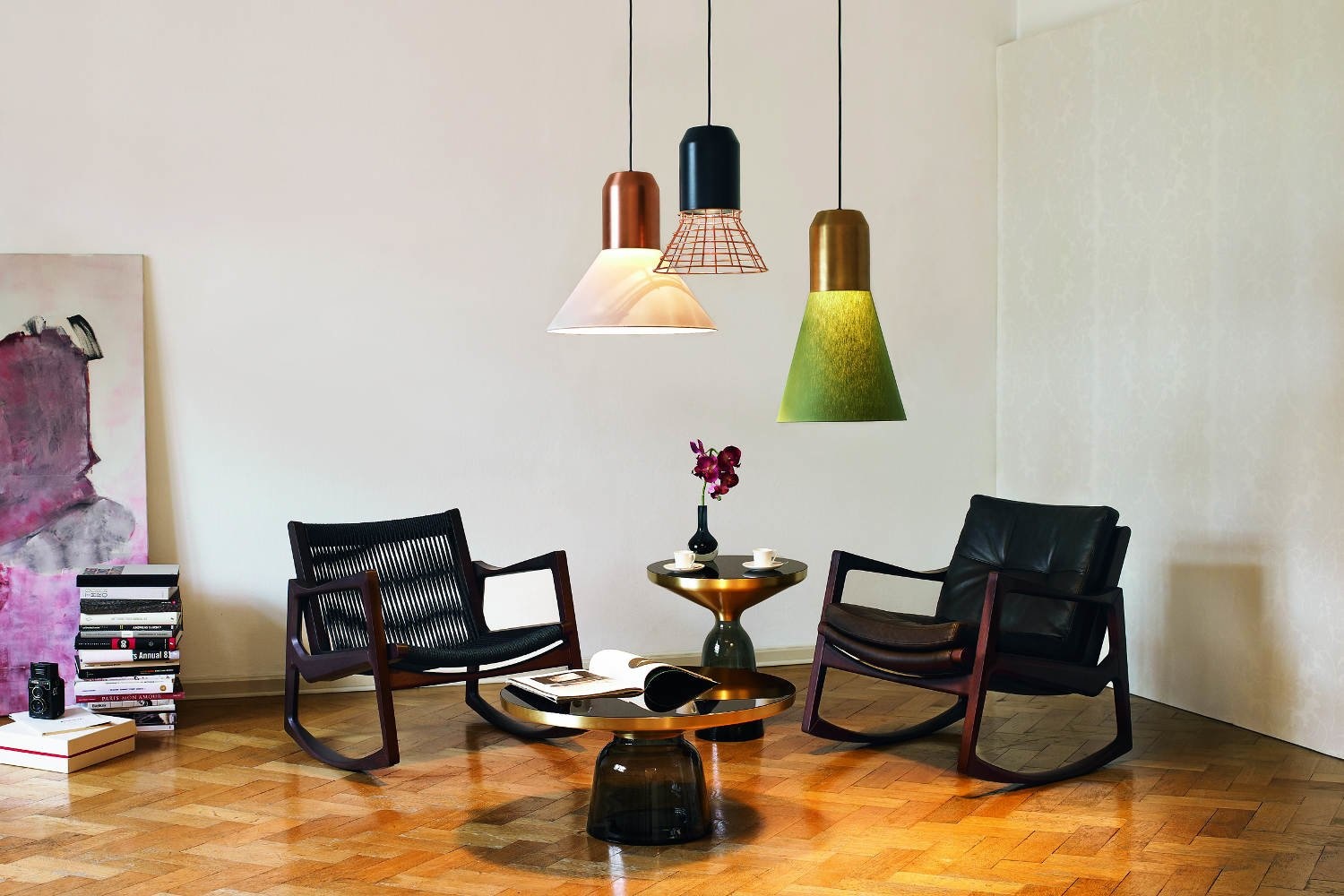 De Bell Lights van ClassiCon is een hang | plafondlamp. Elke lampenkap in deze familie van hanglampen kan gecombineerd worden met een keuze van slanke cilindrische lampenkaphouders in grijs, messing of koper. Wanneer er meerdere lampen zijn opgehangen in een groep, komt er, ondanks de contrasterende tinten toch het gevoel van saamhorigheid. De ClassiCon Bell Lights herinneren zowel qua vorm en functie aan oude studiolampen.