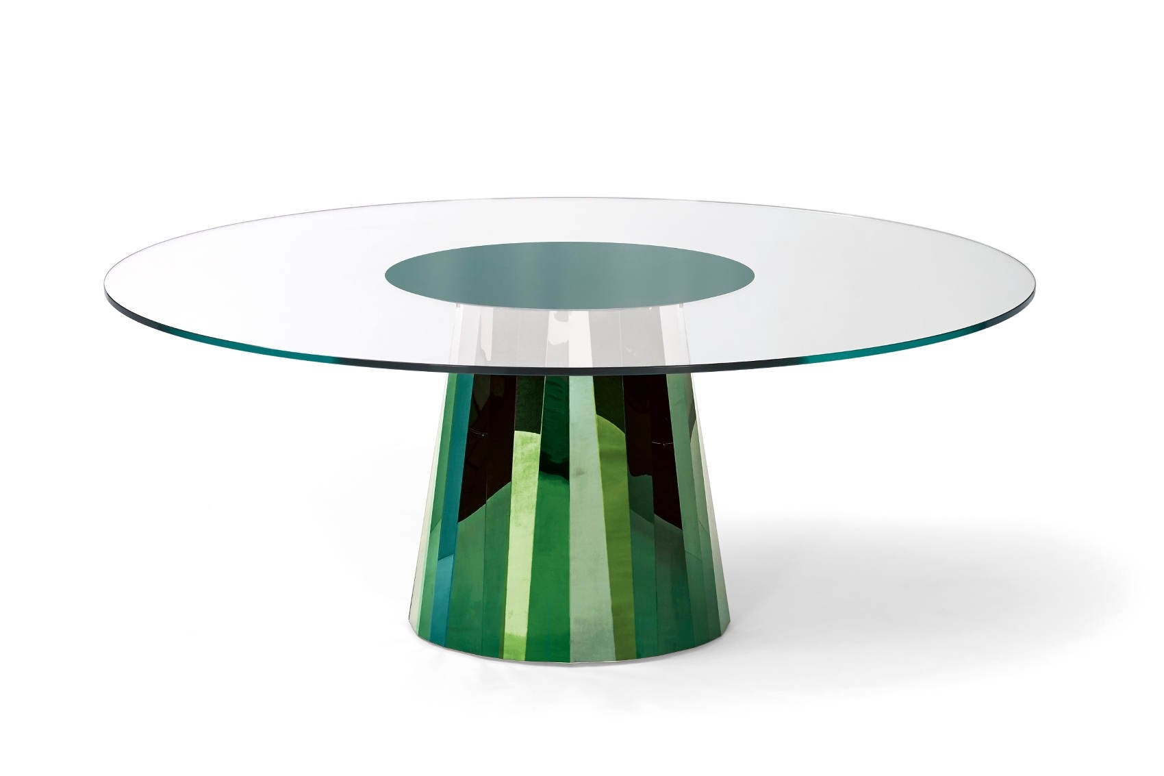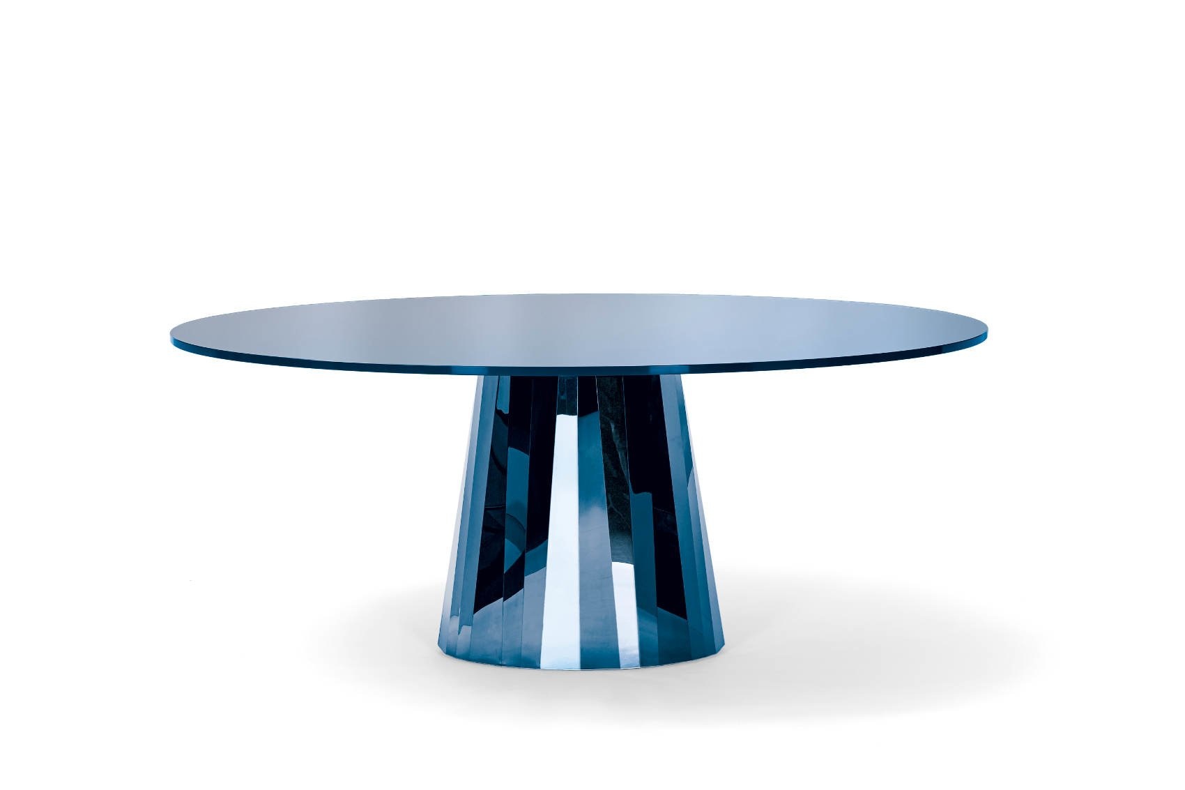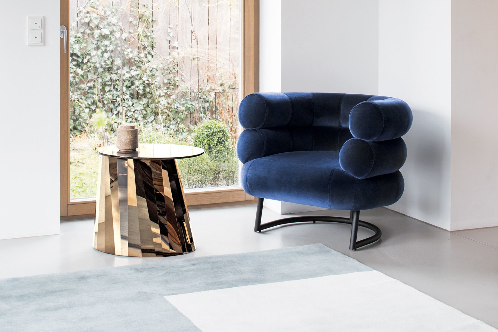 De Pli Side Table is een salontafel met een ongewone elegantie door het geometrische ontwerp. De hoeken en vlakken die de Pli zijn naam geven, zorgen ervoor dat de basis van roestvrij staal haast gepolijst edelsteen lijkt. De Pli bijzettafel is verkrijgbaar in vier verschillende kleuren: groen, blauw, brons of zwart. Het blad is gemaakt van glanzend of mat glas en in kleur bijpassend bij de voet. De ovalen vorm van het blad contrasteert op aantrekkelijke wijze met de hoekige facetten van de basis, die een fascinerend lijnenspel op de omgeving reflecteren. Met zijn waardevolle materialen en sterke kleuren herinnert de Pli aan de elegante designs van de afgelopen decennia, maar is tegelijkertijd een tijdloos 21e-eeuws ontwerp. Materialen