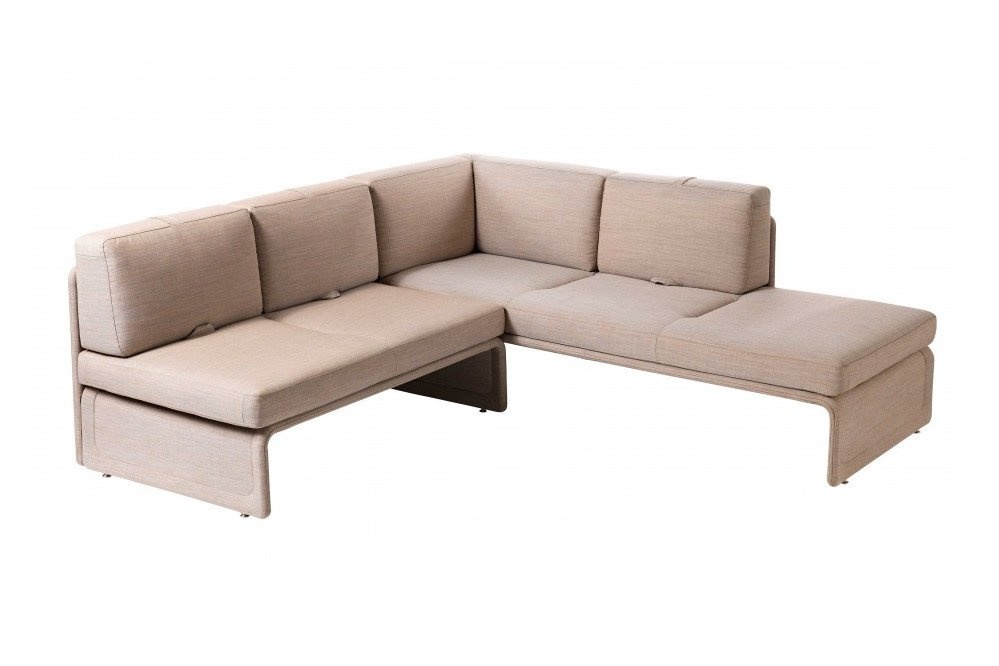 De scharnierende handgreep van het rugkussen is verkrijgbaar in contrasterende stoffen.