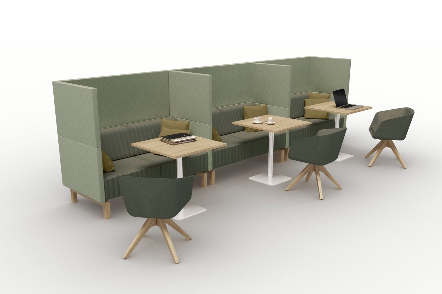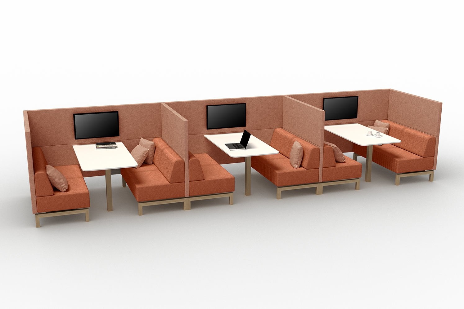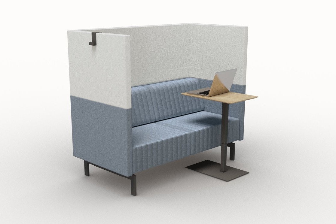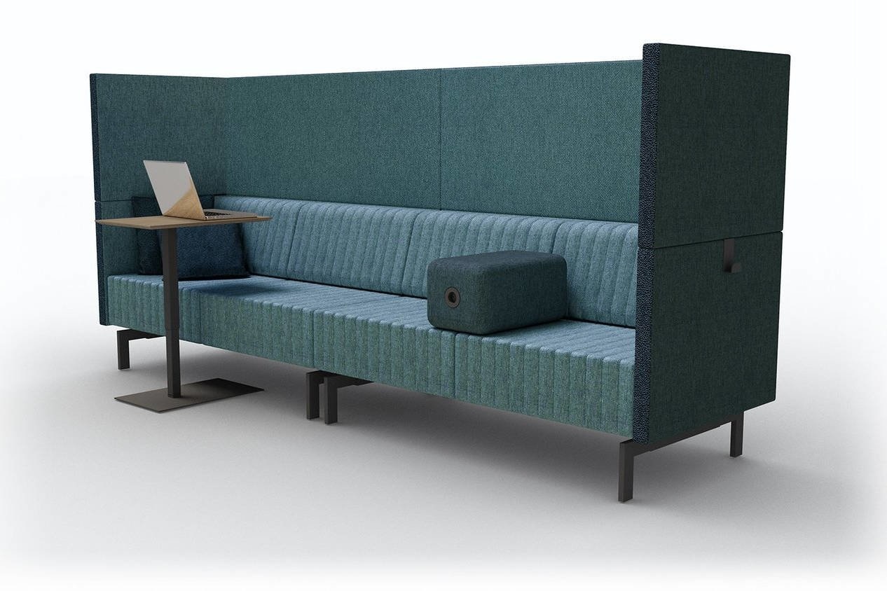 De bank heeft een akoestische wand, wat betekent dat de akoestiek in de ruimte wordt verbeterd, maar ook dat de gebruiker minder geluidsoverlast ervaart.