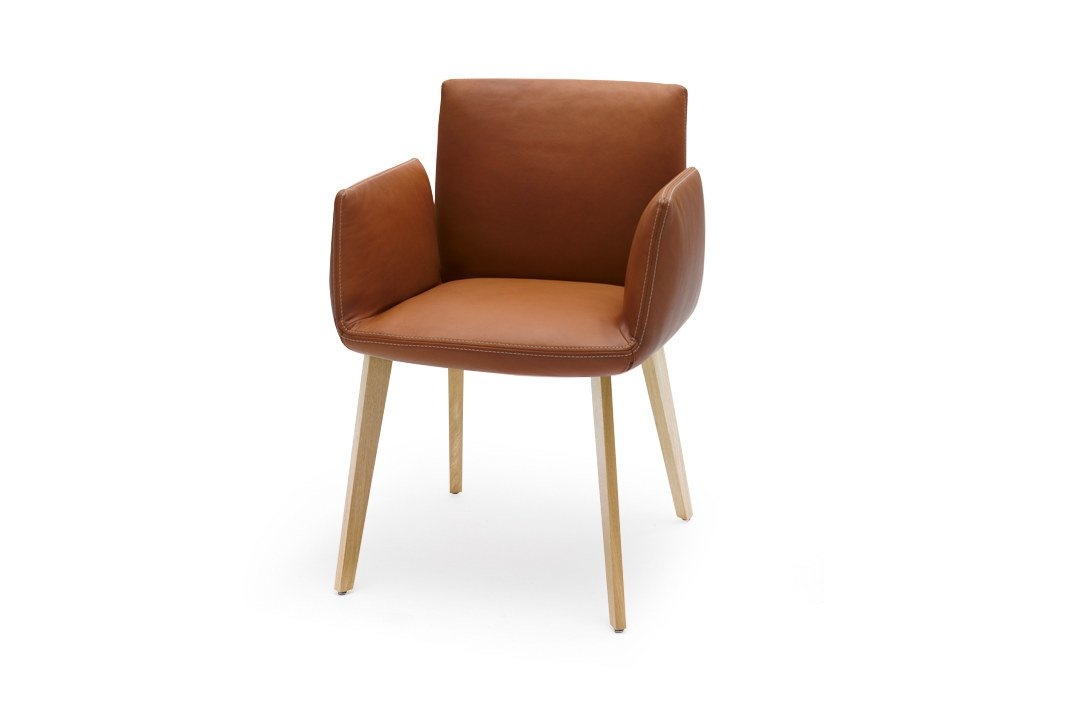 Cor Jalis lage rug modelnummer 585 stoel met 4-poots houten onderstel met armleuningen