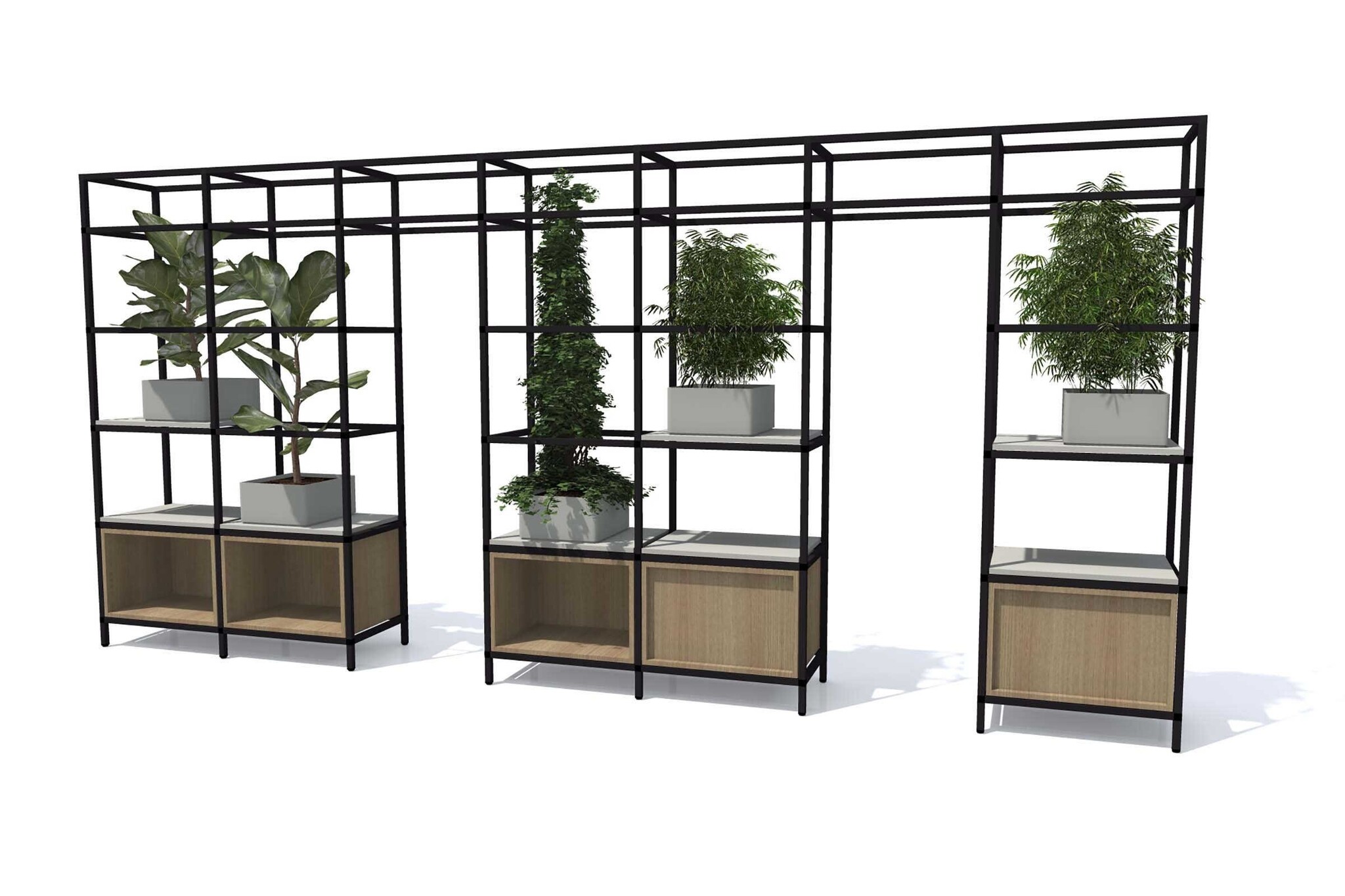 Cowerk Cast kastensysteem is zeer duurzaam: gemaakt van oude tafels en kasten. Dit is een goed voorbeeld van circulairiteit in meubels!Het frame van de Cowerk Cast roomdivider is in te vullen met legborden, boxen en plantenbakken waardoor een meer open of gesloten karakter ontstaat. Met name in open ruimtes is de COwerk Cast© goed toepasbaar als afscheiding van bijvoorbeeld loop- en werkgebieden. Deze roomdivider wordt vaak toegepast met beplanting. Een deel van 130 cm breed is ook op wielen verkrijgbaar zodat er een verrijdbare roomdivider ontstaat.Zo kunt u de kast makkelijk verplaatsen.