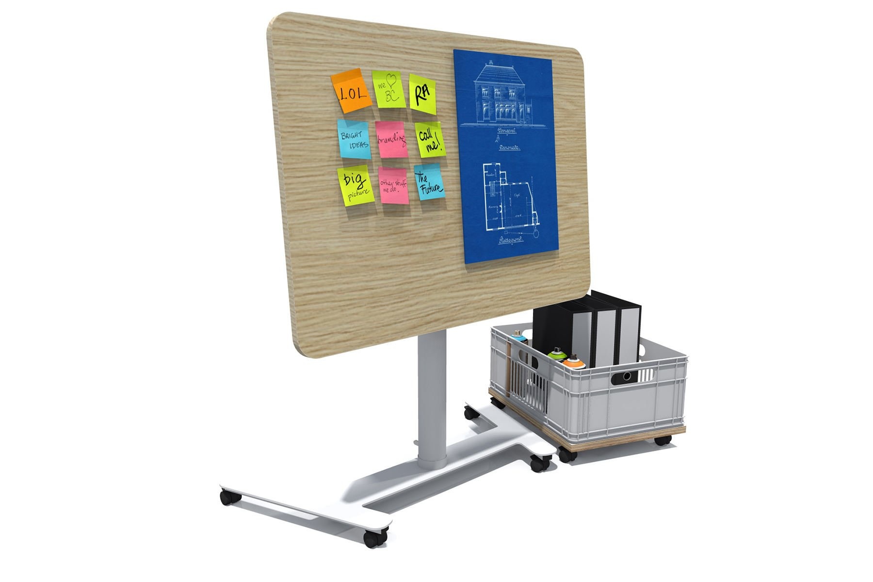 Bovendien kunt u meerdere COwerk Honq mobiele werkplekken bij elkaar plaatsen voor een vergadering. Het leuke is dat, omdat de Honq inklapbaar is, deze meteen als presentatiemiddel te gebruiken is om bijvoorbeeld post-its op te plakken voor een brainstormsessie.