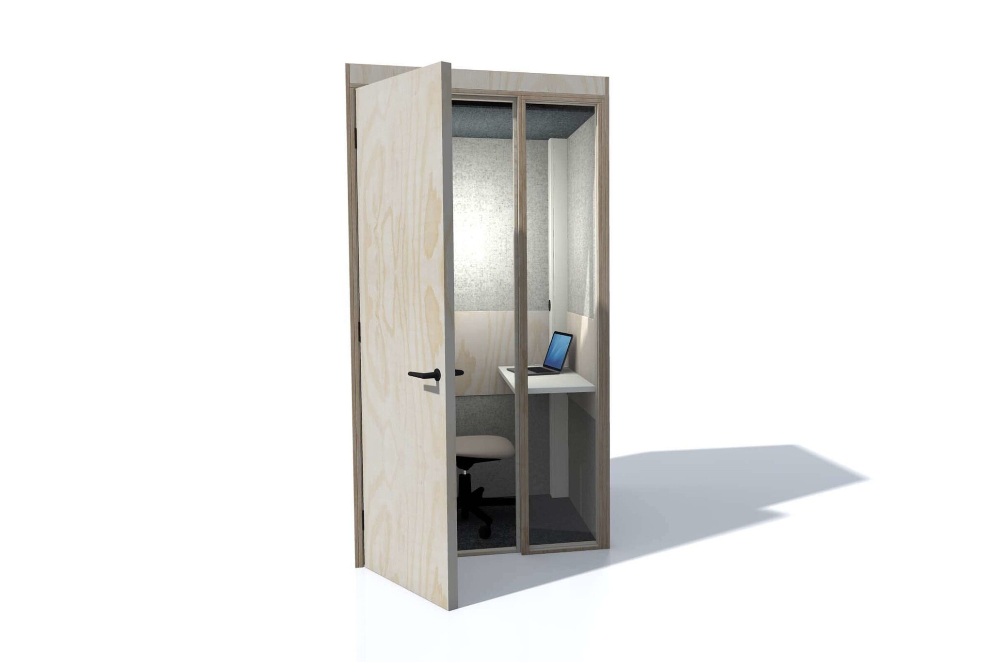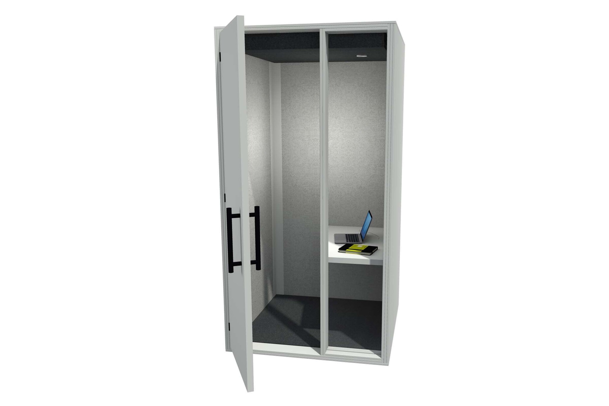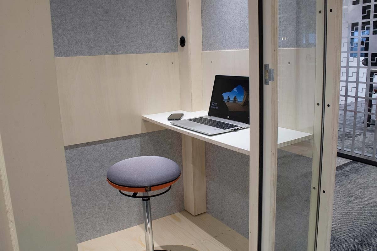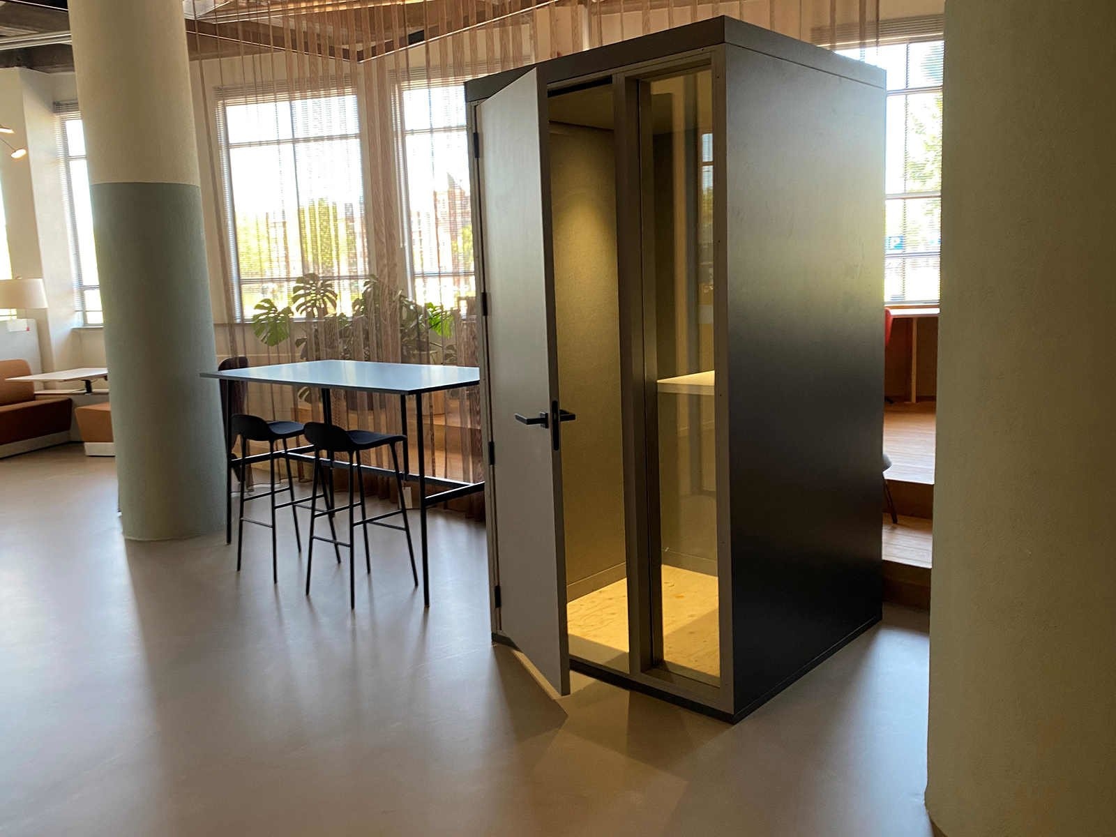 Om ongestoord te bellen of te werken zijn er vele oplossingen. Een akoestische ruimte of belcel, zoals deze COWerk OMO is daar één van.