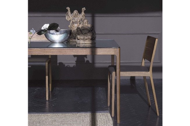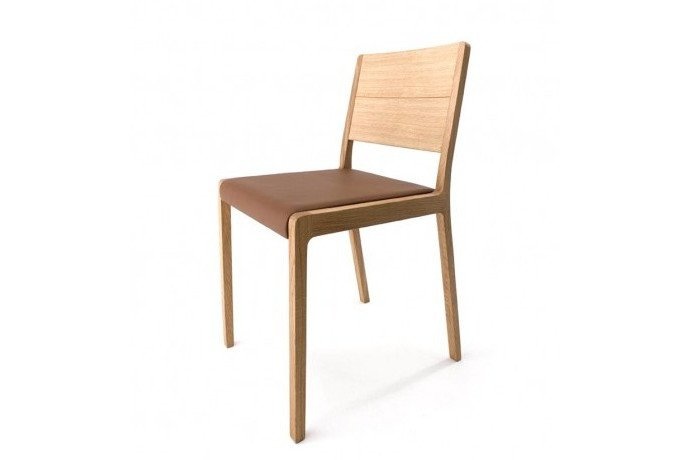 Crassevig Esse, een massief houten stoel met multiplex zitting en eventueel een gestoffeerd paneel. Ontworpen door en de Crassevig Esse is leverbaar als stoel en barkruk. Voor afmetingen en uitvoeringen zie brochure.