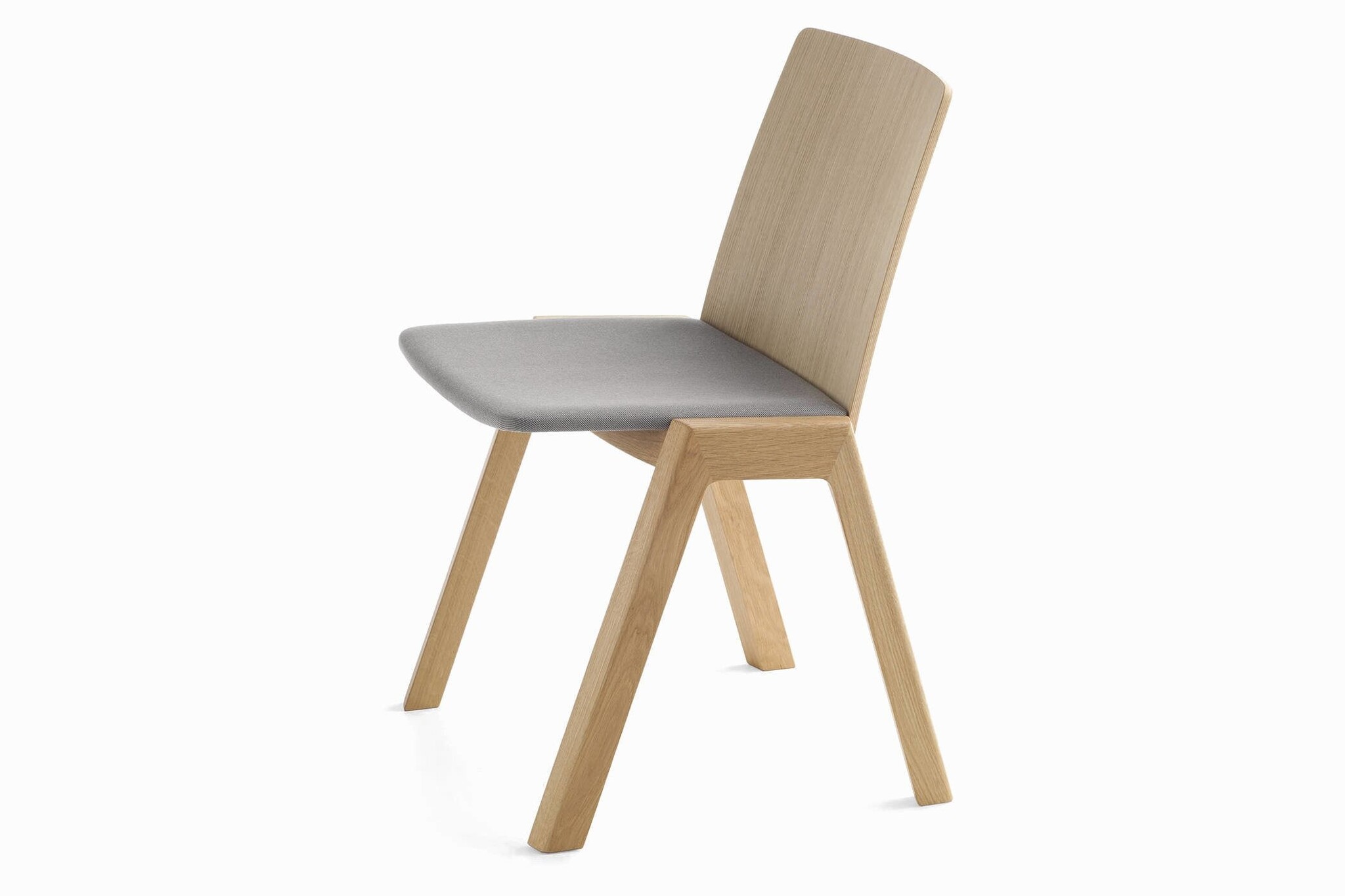 De structuur van de stoel is massief hout en 11 mm dik multiplex in 10 lagen. Ze zijn verkrijgbaar in naturel, gelakt of gelamineerd beuken of eiken. Daarnaast is er ook de mogelijkheid voor een gestoffeerde | gewatteerde zitting. Deze heeft een dikte van 12 mm en is voorzien van de vlamvertragende BS 5852.
