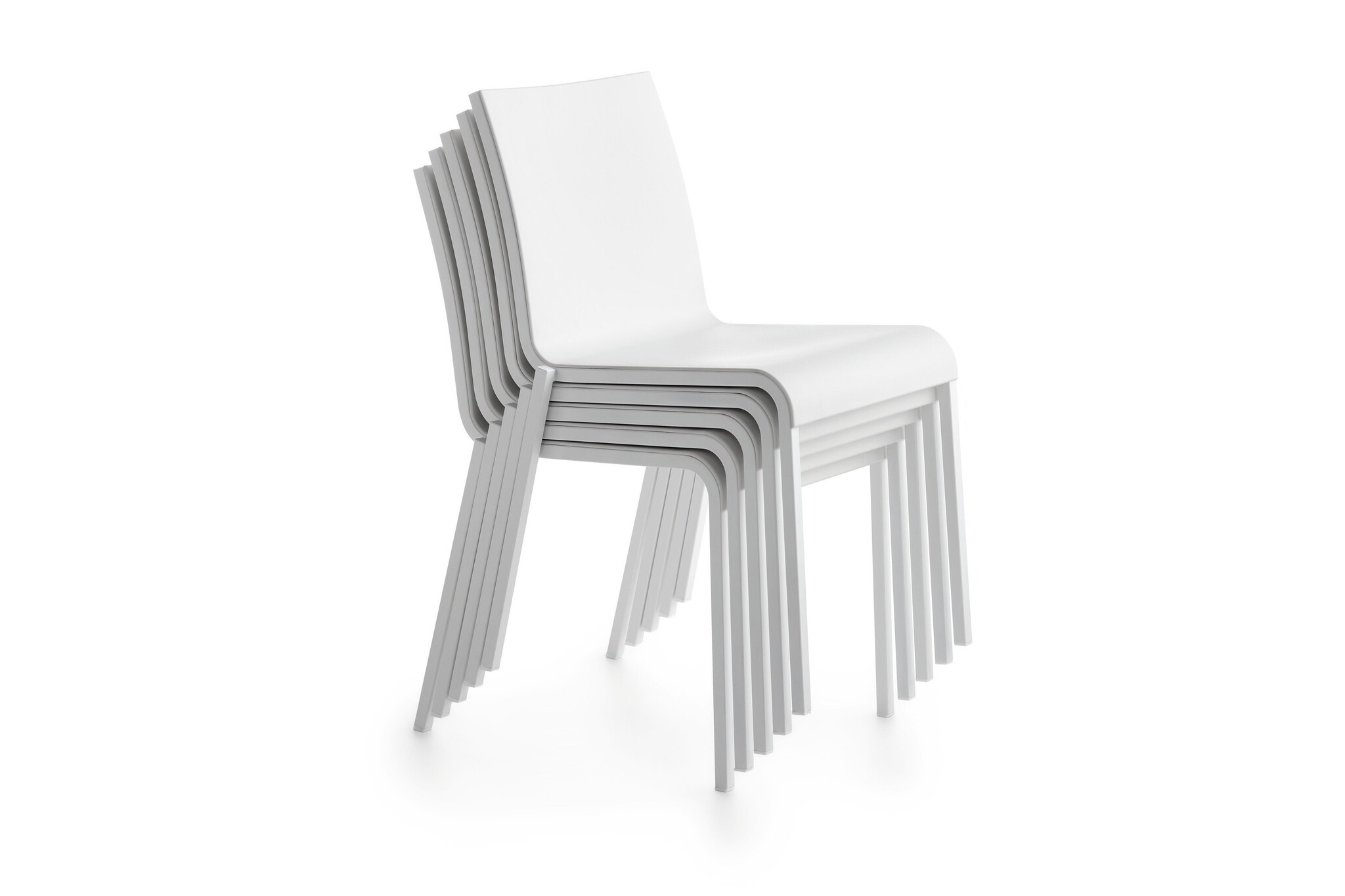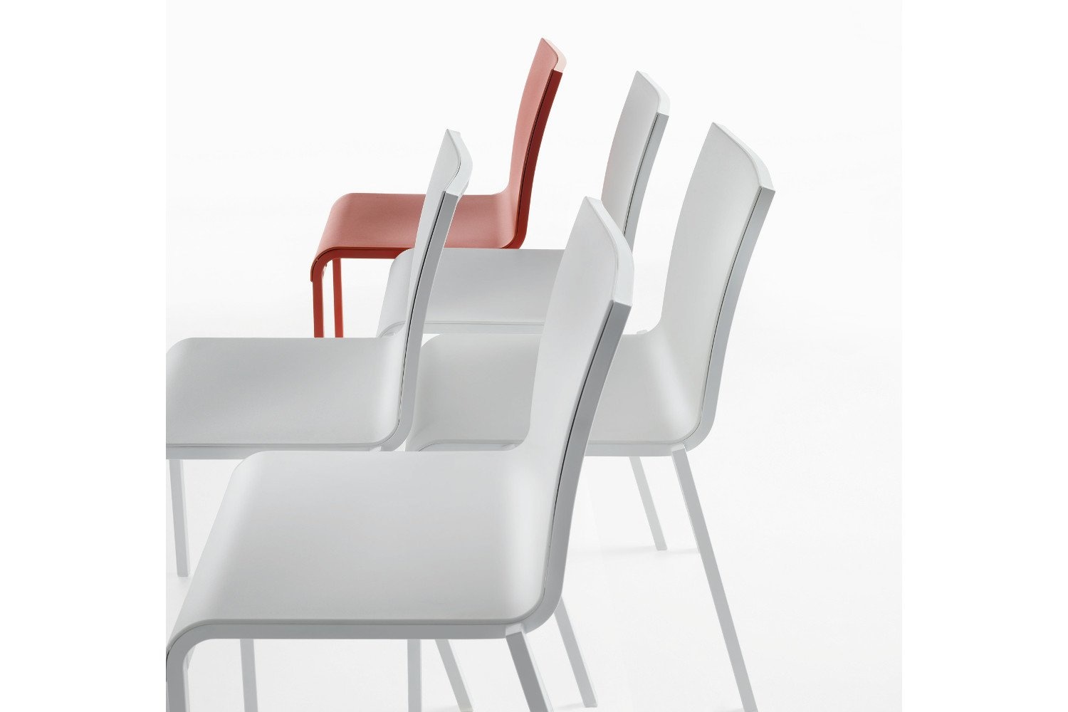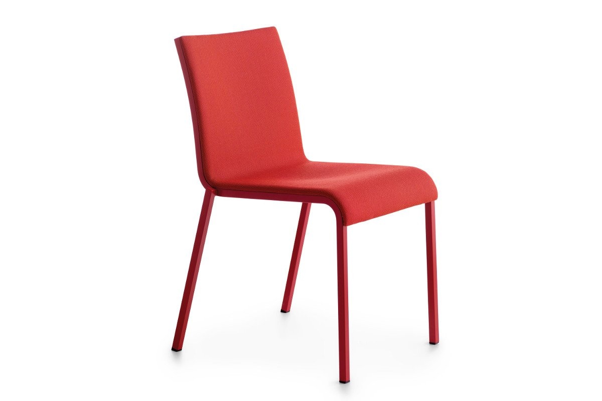 Crassevig Persia, eenvoudige stoel met een frame van vierkante stalen buizen. De Crassevig Persia stoel is verkrijgbaar in verschillende kleuren, met of zonder armleggers.