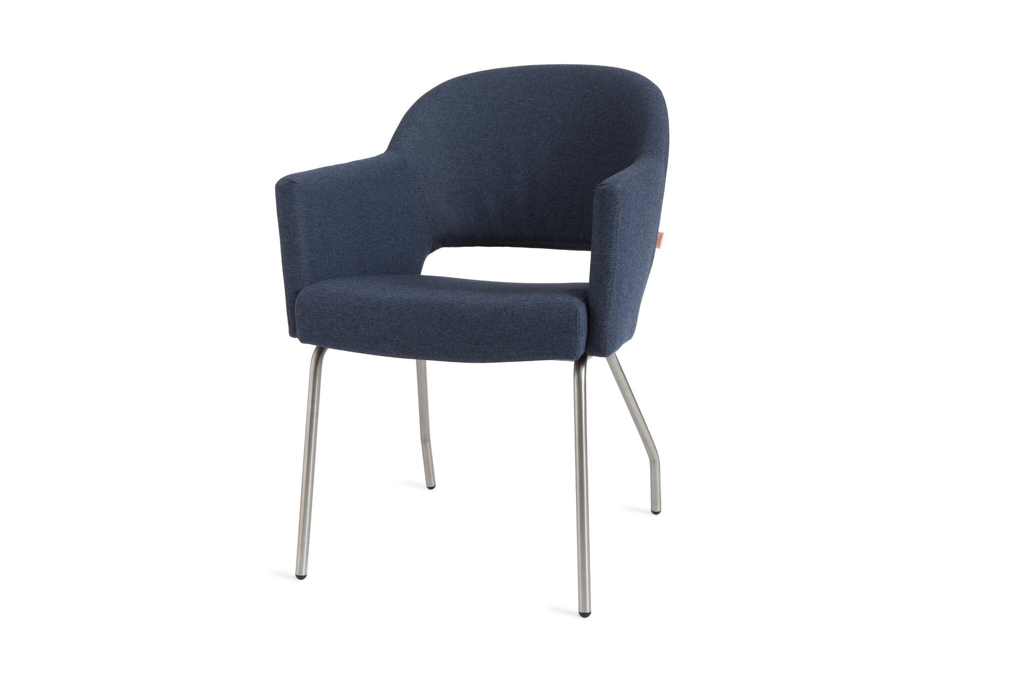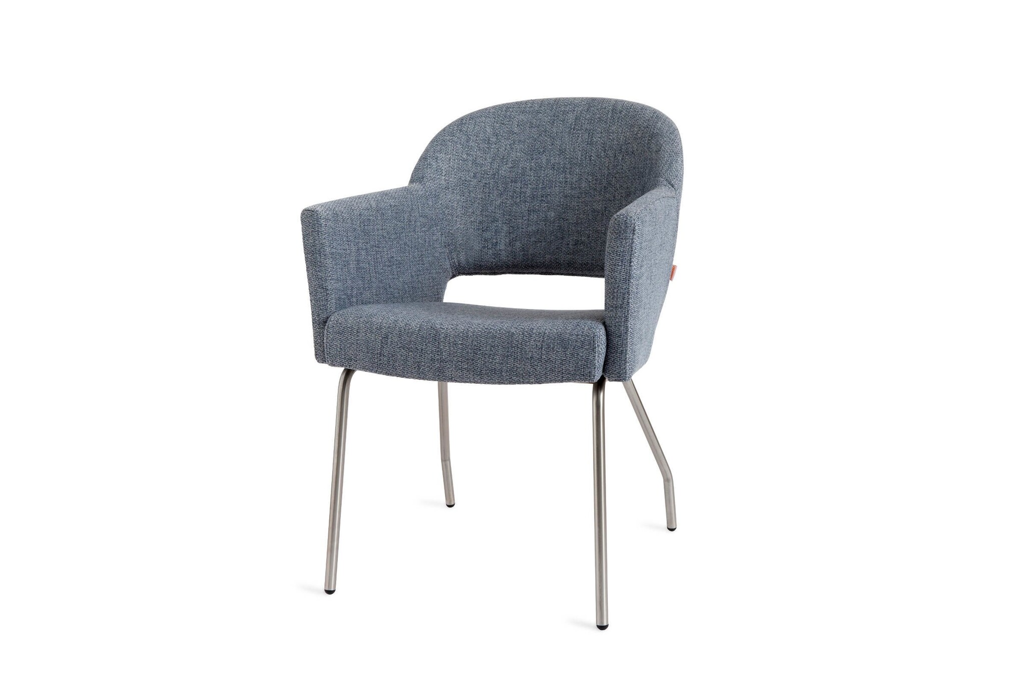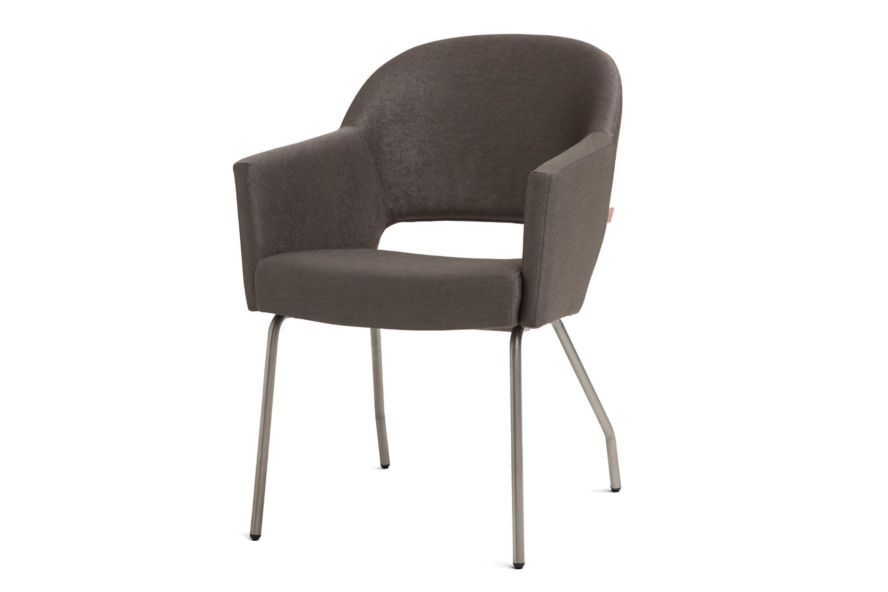 De Flow armstoel van Creafort is gestoffeerd met leer en het frame is van RVS. Afmetingen Creafort Flow stoel