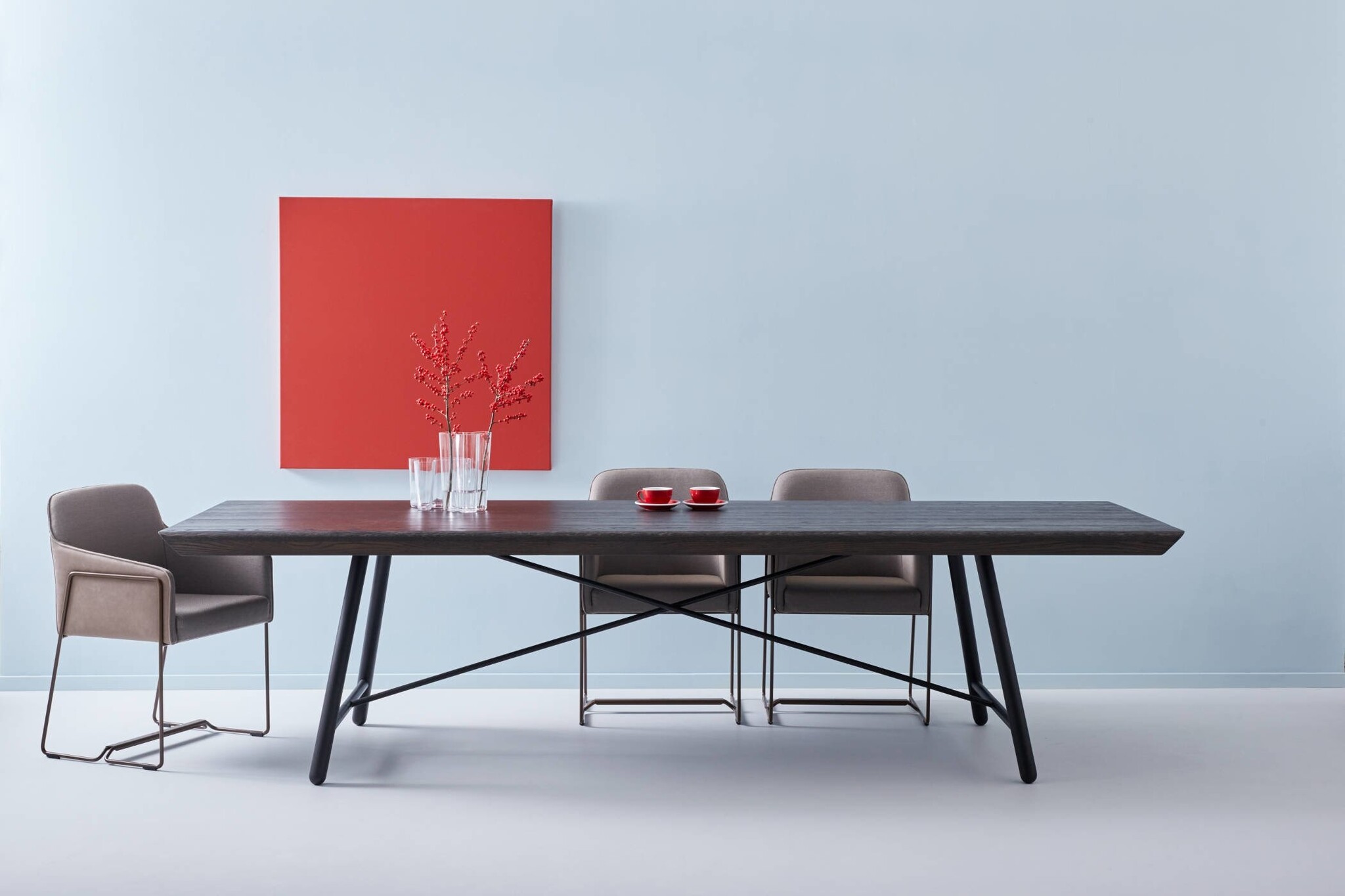 De Creafort Fly is een lange tafel die met zijn ranke poten en houten tafelblad ideaal toepasbaar is als vergadertafel. Deze tafel lijkt weg te willen vliegen! Evenwel zorgen zijn zeer elegante en sterke metalen onderstel in combinatie met het massief eikenblad, afgerond aan beide zijden, voor een bijzonder stabiele en mooie combinatie. Deze tafel is duurzaam, gebruiksvriendelijk, stabiel en een ware 'eyecatcher', dankzij de zachte lange zijden van het blad en de snelheid van de kopse kant zorgen voor herkenbaar Nederlands vakmanschap van Creafort. Eigenschappen van de Creafort Fly tafel
