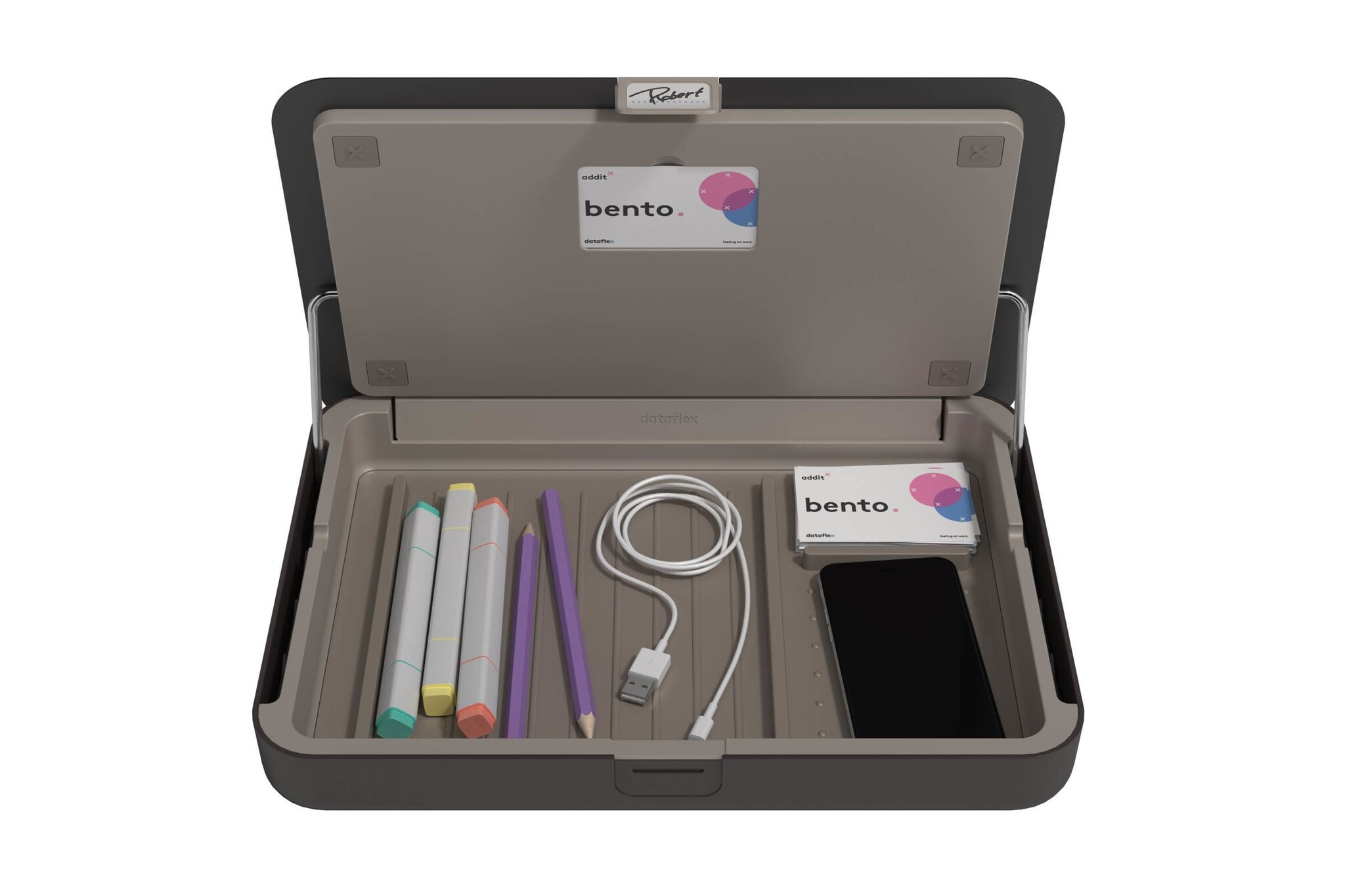 Dataflex Addit notebookverhoger is leverbaar in 2 varianten, als Bento® ergonomische toolbox en verstelbare notebookverhoger. De eerste is geïnspireerd op de bentobox, de Japanse lunchtrommel. Hiermee bergt u uw persoonlijke spullen netjes op. Daarnaast ondersteunt de toolbox uw favoriete apparaten of documenten. Kenmerken Dataflex Addit notebookverhoger