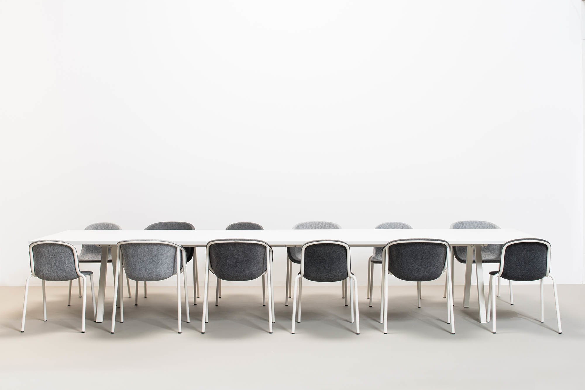 De Vorm Big tafel is uitermate geschikt om te gebruiken als grote vergadertafel. Met de nadruk op een grote tafel. Deze De Vorm Big vergadertafel kan maar liefst tot een lengte van bijna 6,5 meter gemaakt worden. Het is ook mogelijk om een tafelblad uit één stuk te kiezen. De mogelijkheid om stopcontacten en de USB / AV-aansluitingen te integreren met het stalen frame, die als een kabelgoot onder het tafelblad is weggewerkt, maakt De Vorm Big tafel ideaal geschikt voor kantoren, vergaderzalen en openbare ruimten, zoals bibliotheken of scholen.