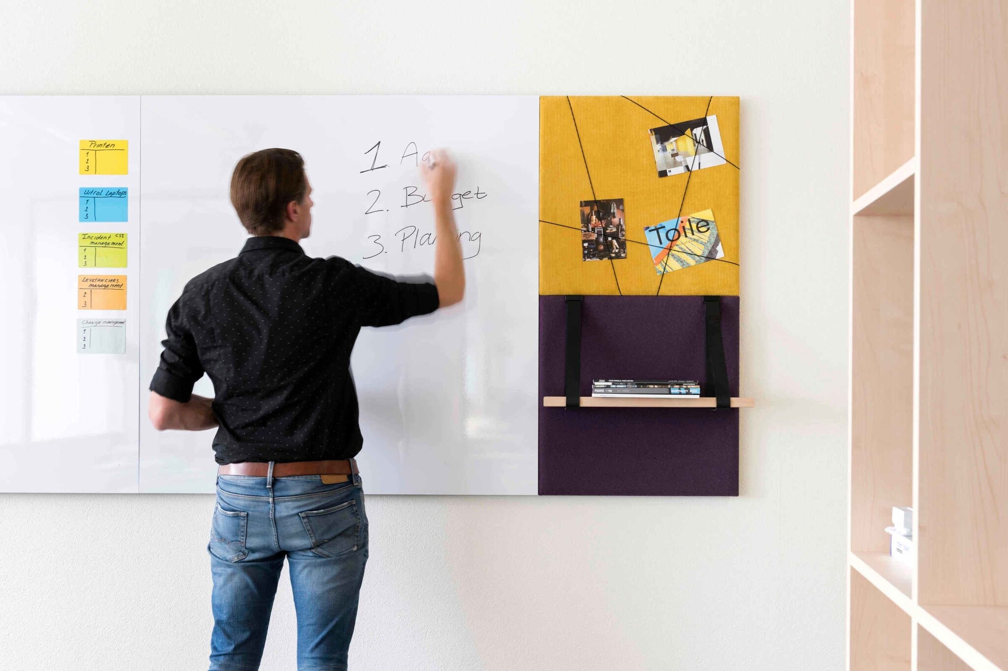 Met behulp van een wisser is er telkens weer schrijfruimte om een nieuwe aantekening te maken. Daarnaast bieden de magnetische borden de mogelijkheid om notities, foto’s, brochuremateriaal en dergelijke op een praktische en tegelijkertijd decoratieve manier te bevestigen en te presenteren. Nooit meer rondslingerende papiertjes of op zoek naar die ene belangrijke notitie die bewaard had moeten blijven.