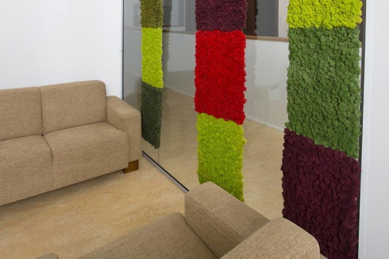 Polarmoss Flex Element zijn te bevestigen aan wanden en voegen een indrukwekkende dimensie toe aan publieke ruimtes. Het product is met de hand vervaardigd uit Polarmoss’ hoge-kwaliteit Polarmoss Extra mos dat is gekleurd en geconserveerd. De hoge-kwaliteit Polarmoss Flex Element is onderhoudsvrij, vlamvertragend en geluidabsorberend en is tevens een binnenoppervlak product dat fungeert als een indicator van goede luchtvochtigheid.