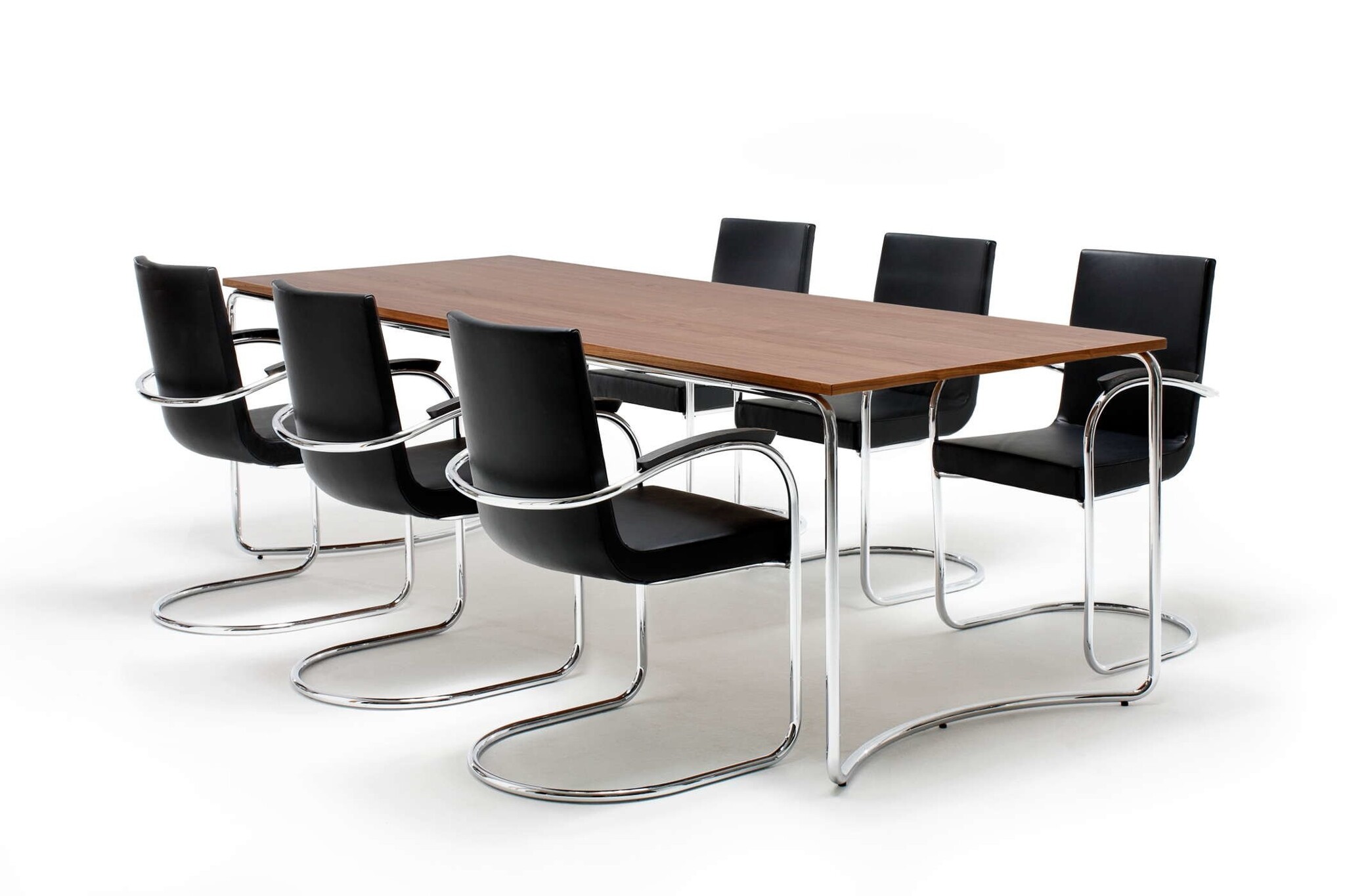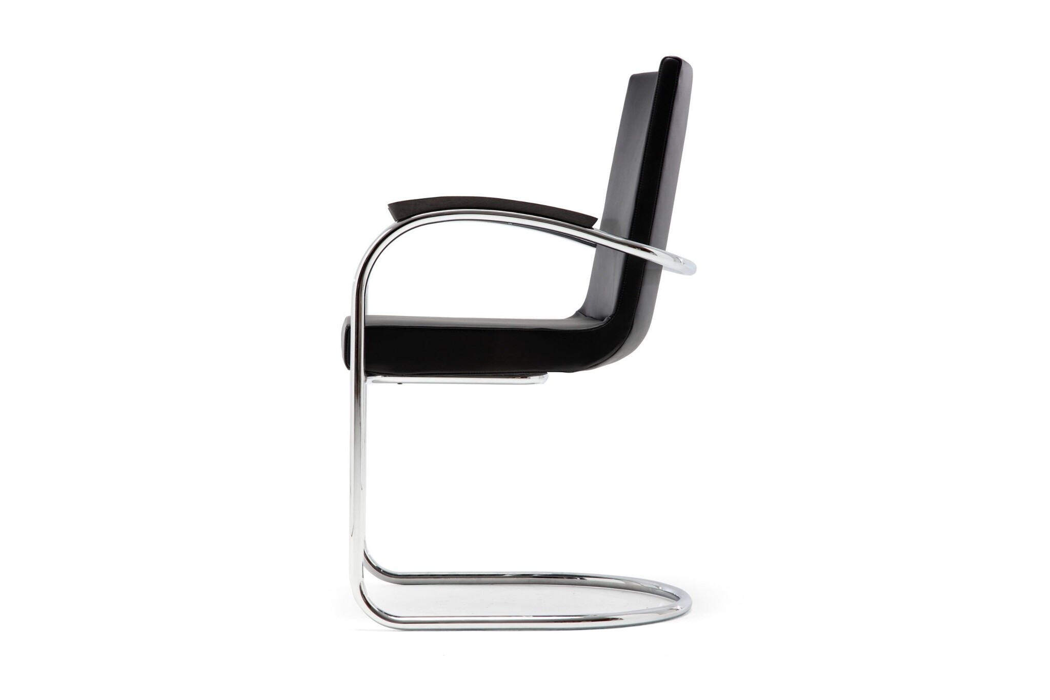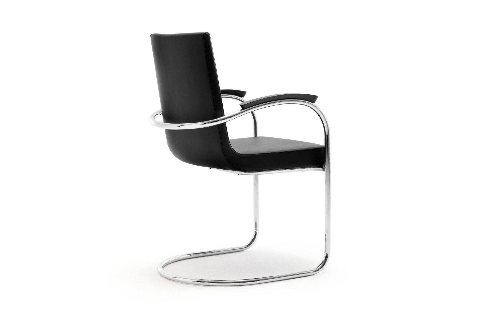 Sledestoel met een frame in hoogglans chroom. Optioneel kan deze in zwart mat poedercoat of matchroom.