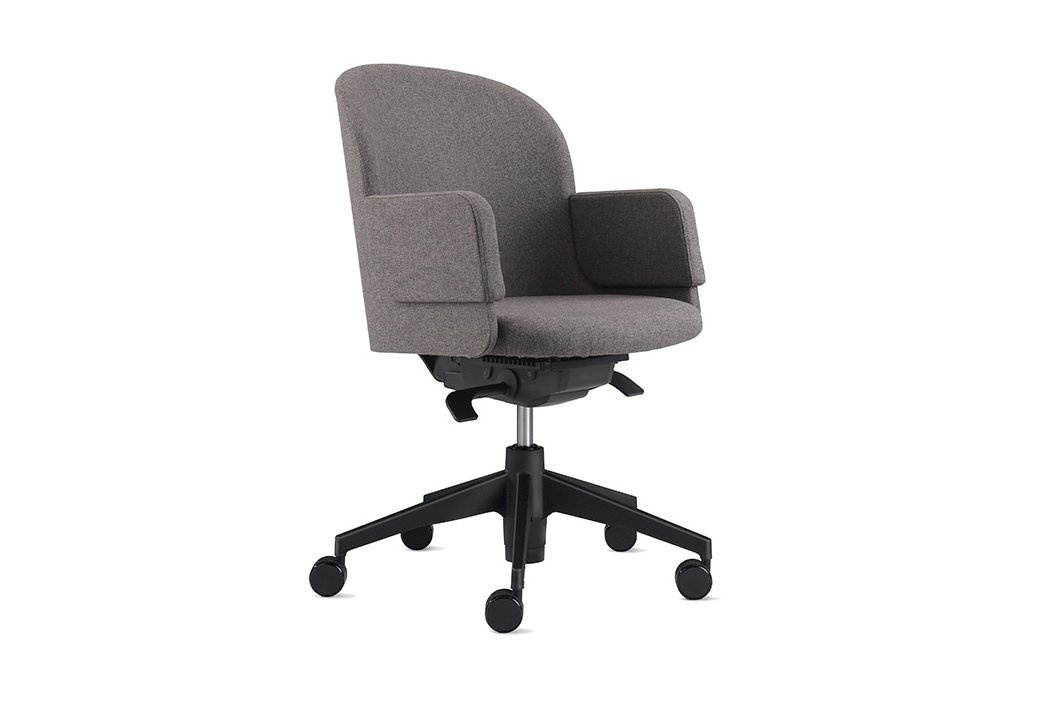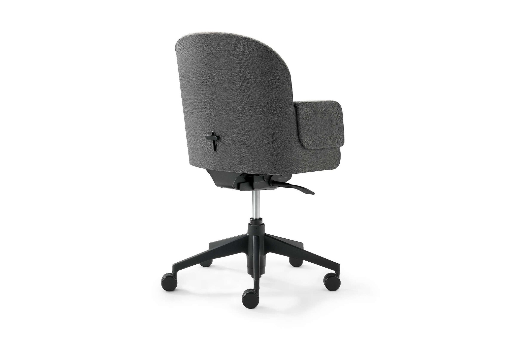 De stoel is voorzien van armleuningen voor optimale ondersteuning.