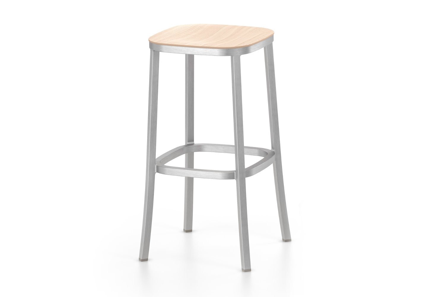 Met de 1 inch kruk van Emeco maakt Jasper Morrison een begin in de collectie met handgemaakte gerecyclede aluminium producten. Het is een lichtgewicht kruk voor binnen en buiten welke door middel van 77 stappen in het productieproces in 1944 voor het eerst is gemaakt. Voor het maken van deze kruk werd er gekozen voor een buis van 1 inch om het frame van te maken. Dit omdat het zo een sterk frame zou worden, maar het gewicht van de barkruk zo laag mogelijk houdt. Er wordt dus met een minimale hoeveelheid materiaal een maximale sterk product gecreëerd. De Emeco 1 inch van Jasper Morrison is een perfecte combinatie tussen handwerk, precisie, ontwikkelingen, duurzaamheid, esthetiek, kracht en comfort. Het gebruikte hout is 100% gerecycled hout en kan geverfd worden in zeven kleuren: blauw, bordeaux, bruin, donker grijd, groen, lichtgroen en oker. Ook geschikt voor buitengebruik