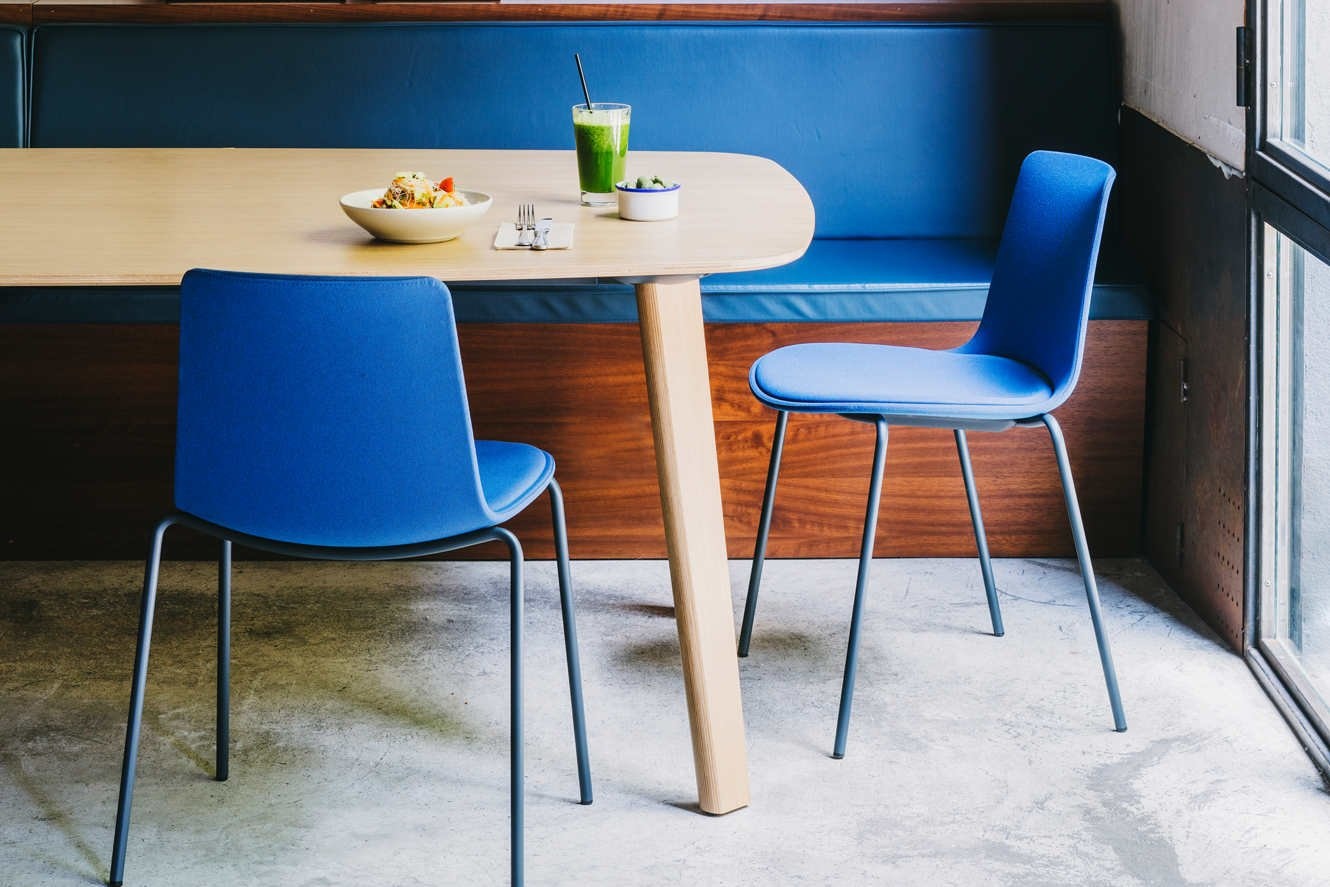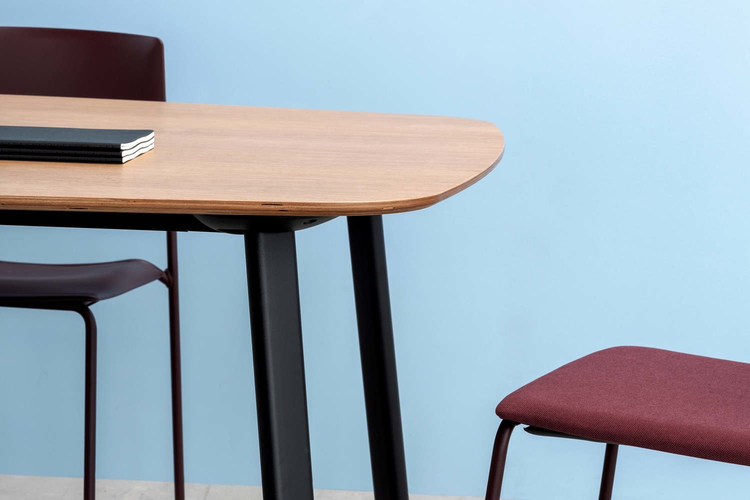De tafel is verkrijgbaar in 12 kleuren en heeft 2 soorten basismaterialen waar u uit kunt kiezen: Hout of aluminium.