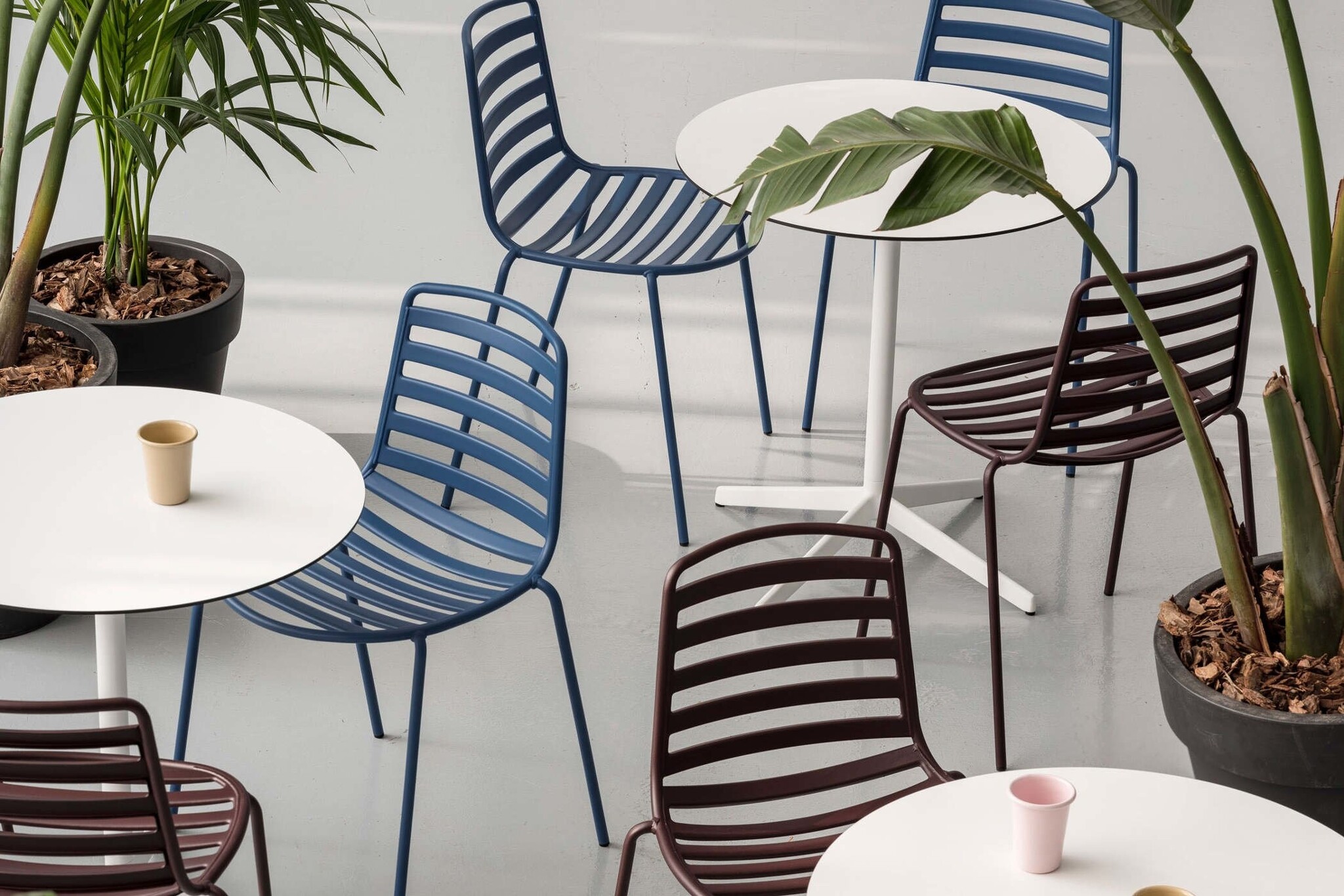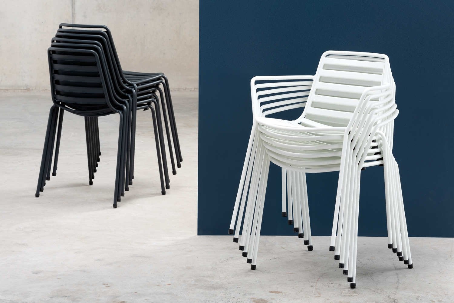 Street stoel is stapelbaar (tot een maximum van 6 stuks), hetgeen ideaal is wanneer de Enea Street stoelen op het terras gebruikt worden en opgeruimd moet worden.