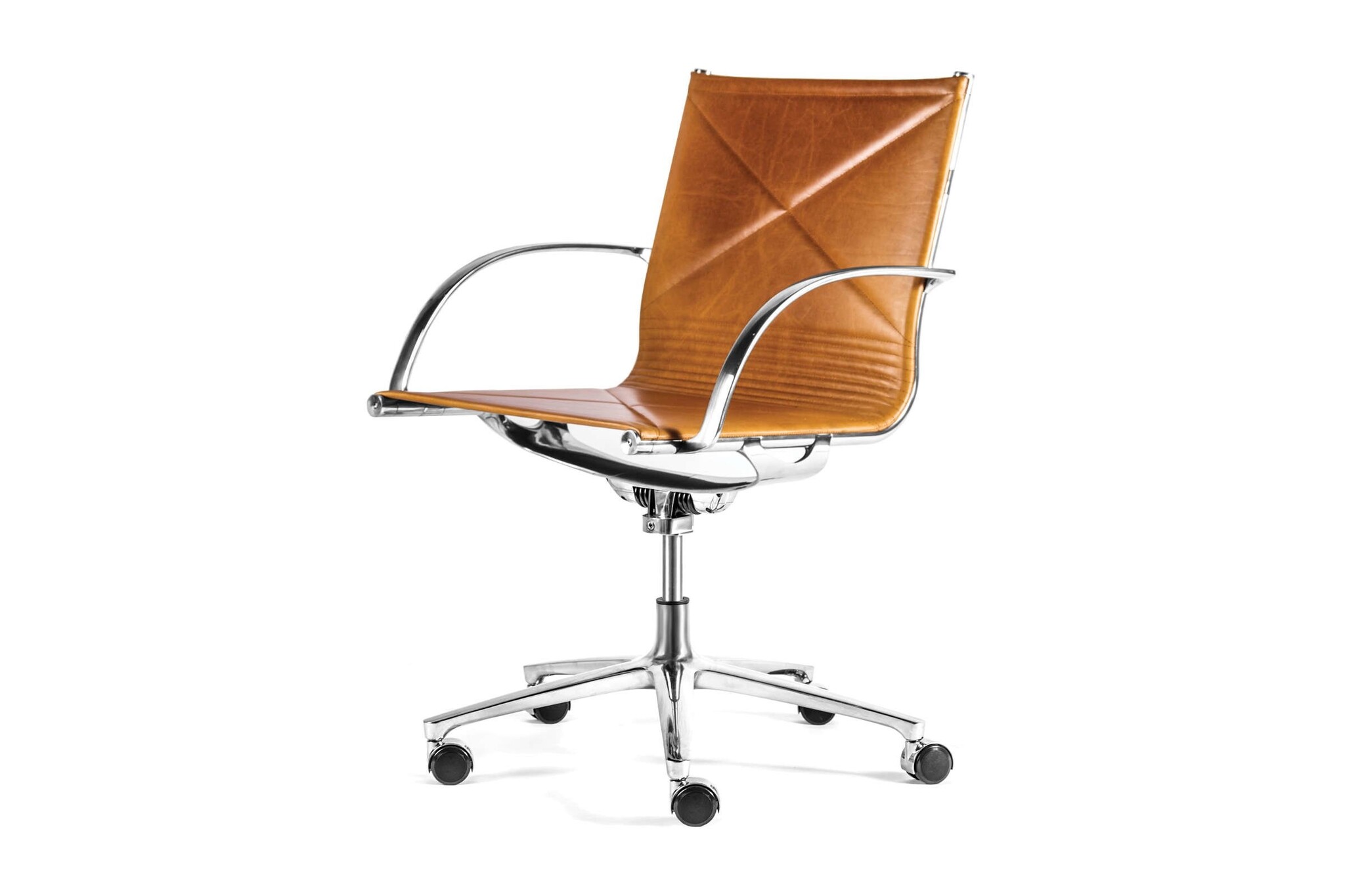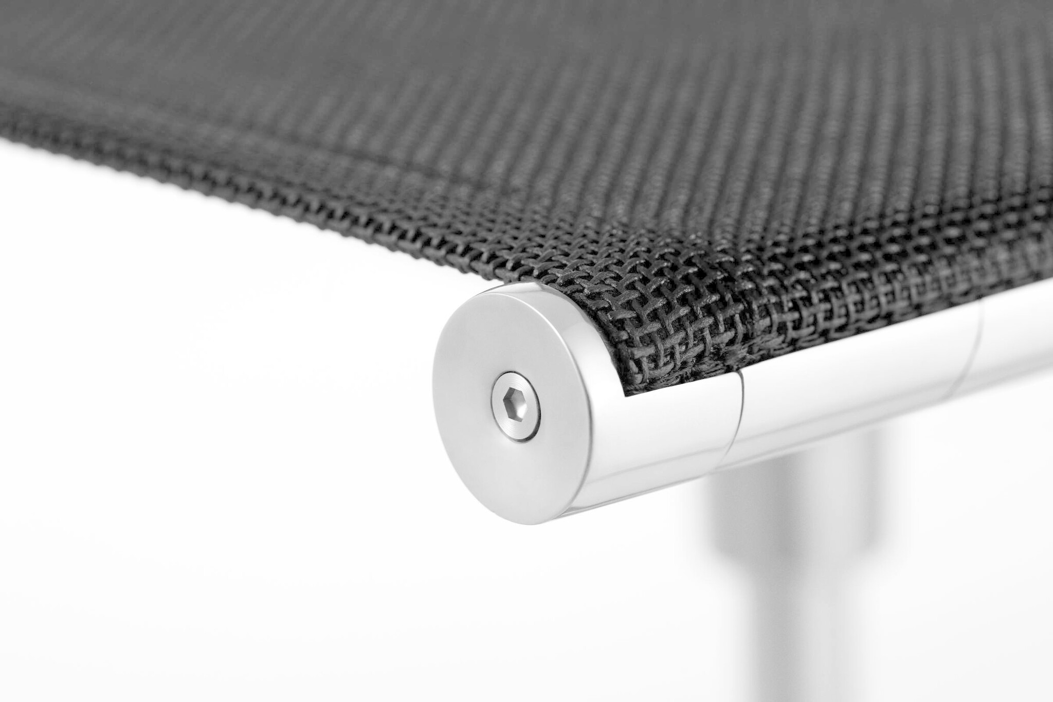 Engelbrechts Joint stoel is gemaakt van gepolijst aluminium, verkrijgbaar met een 4-ster draaivoet voor vergaderingen of een 5-ster draaivoet met hoogteverstelling als een bureaustoel. Beide versies zijn verkrijgbaar in gaas, stof of leer. Engelbrechts Joint afmetingen:
