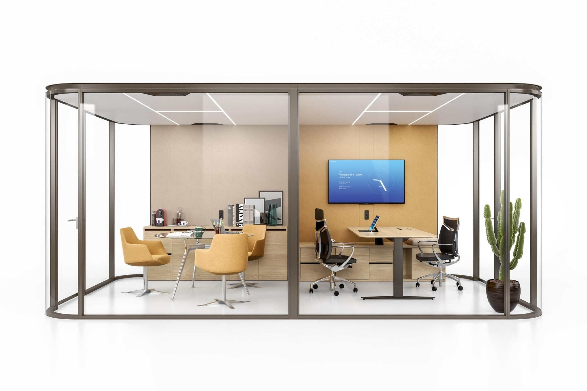 Er is heel veel mogelijk met de Room X, deze is geheel naar eigen wens in te delen. Voor advies kunt u terecht bij de experts van Tint Office.