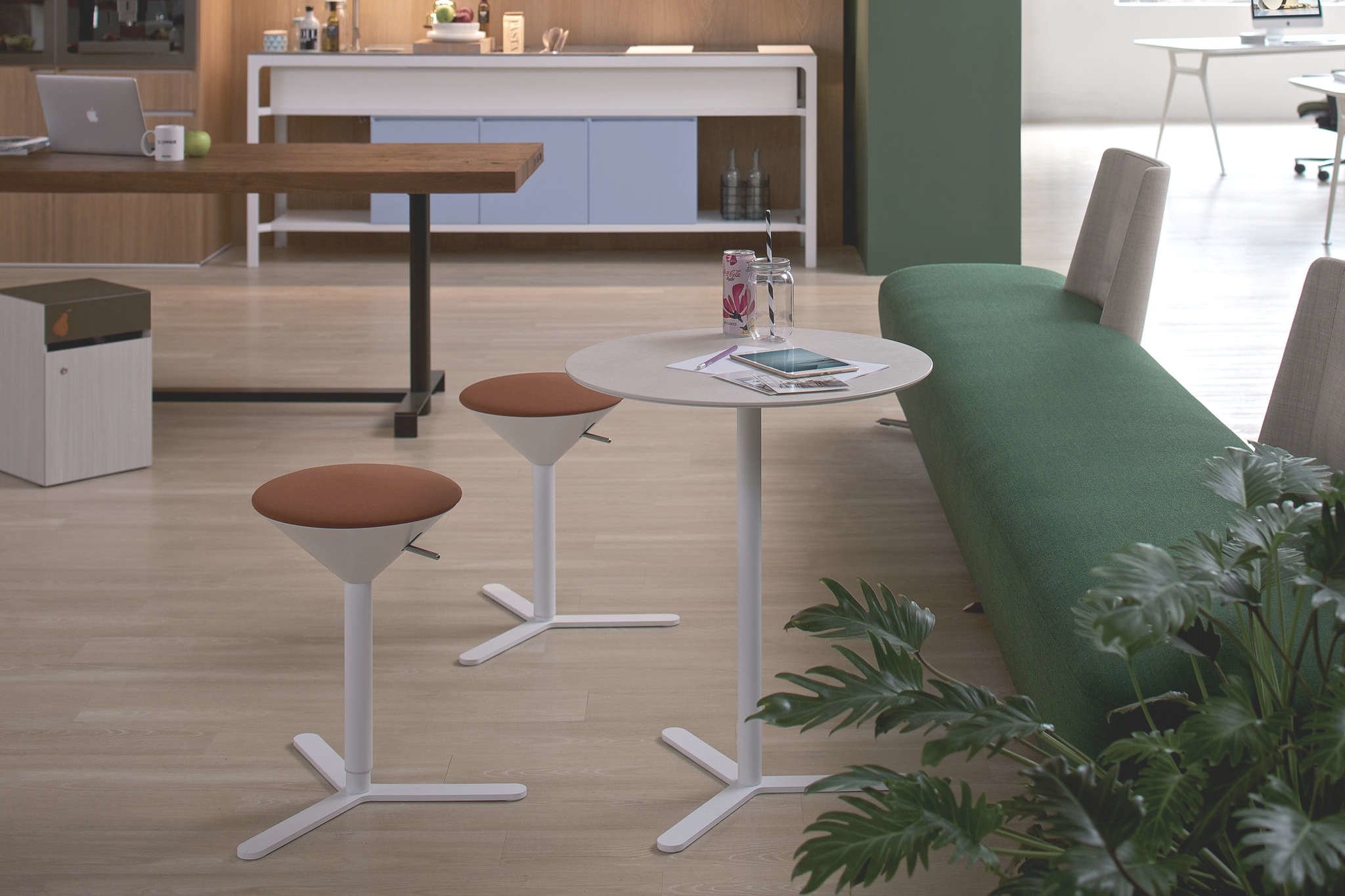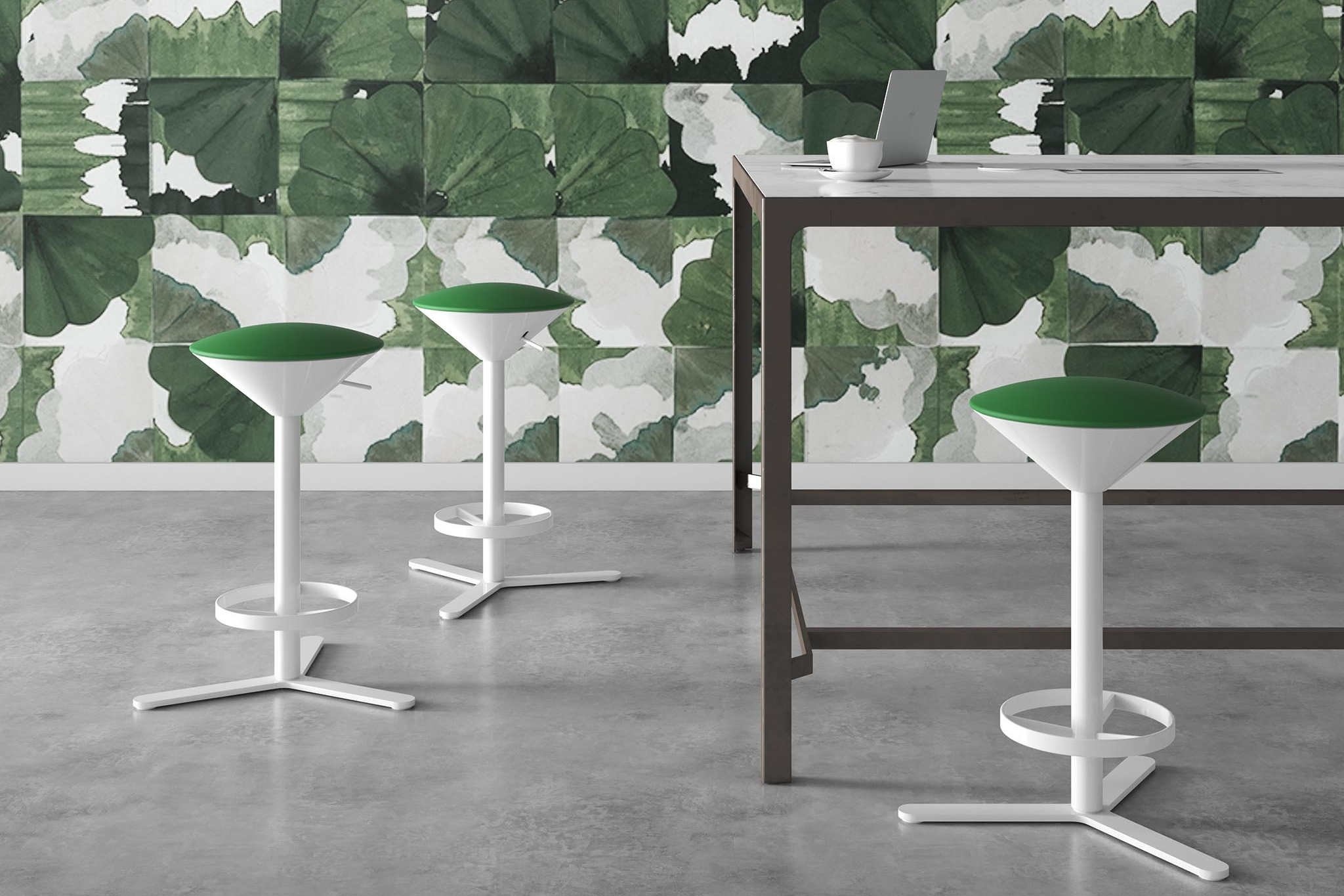 De Estel Cono kruk, ontworpen door de ontwerper Jorge Pensi, heeft een minimalistische en geometrische vorm en is leverbaar in 2 variaties, met of zonder voetensteun en de kruk is in hoogte verstelbaar. De zitting is gestoffeerd en comfortabel voorzien van schuim. Dat maakt deze kruk ideaal van toepassing in werkomgevingen waarbij er vergaderd wordt aan hoge tafels en je toch even wilt zitten. Ook toe te passen in een bar, restaurant of andere horecagelegenheid. Kenmerken van de Estel Cono barkruk