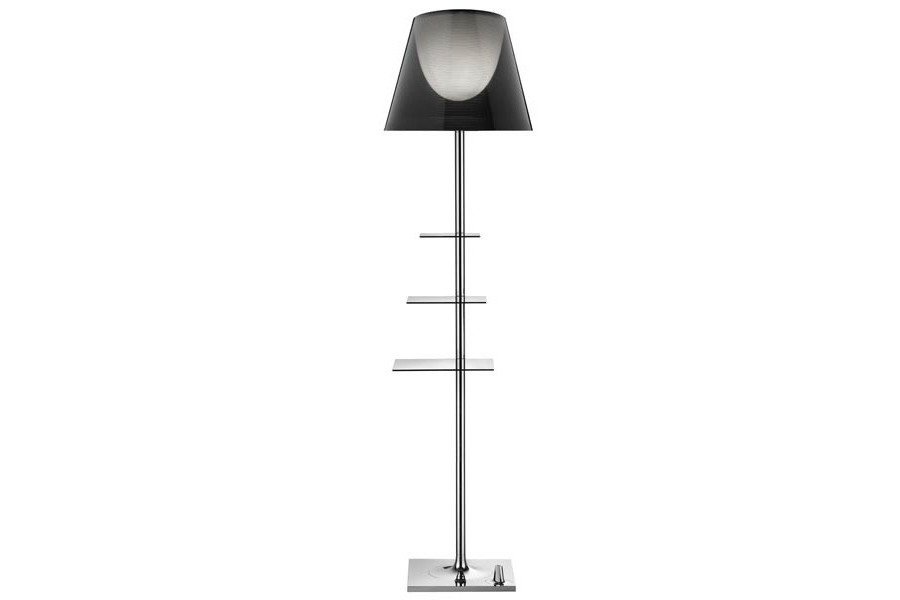 Flos Bibliotheque Flos Bibliotheque is een staande vloerlamp die wordt gekenmerkt door drie boekenplanken van roestvrij staal. De planken zijn bevestigd aan de centrale sokkel en begeven zicht in een opwaartse spiraal naar het licht. De Bibliotheque is uitgerust met een USB-aansluiting voor het opladen van diverse mobiele apparaten zoals tablets en smartphones.