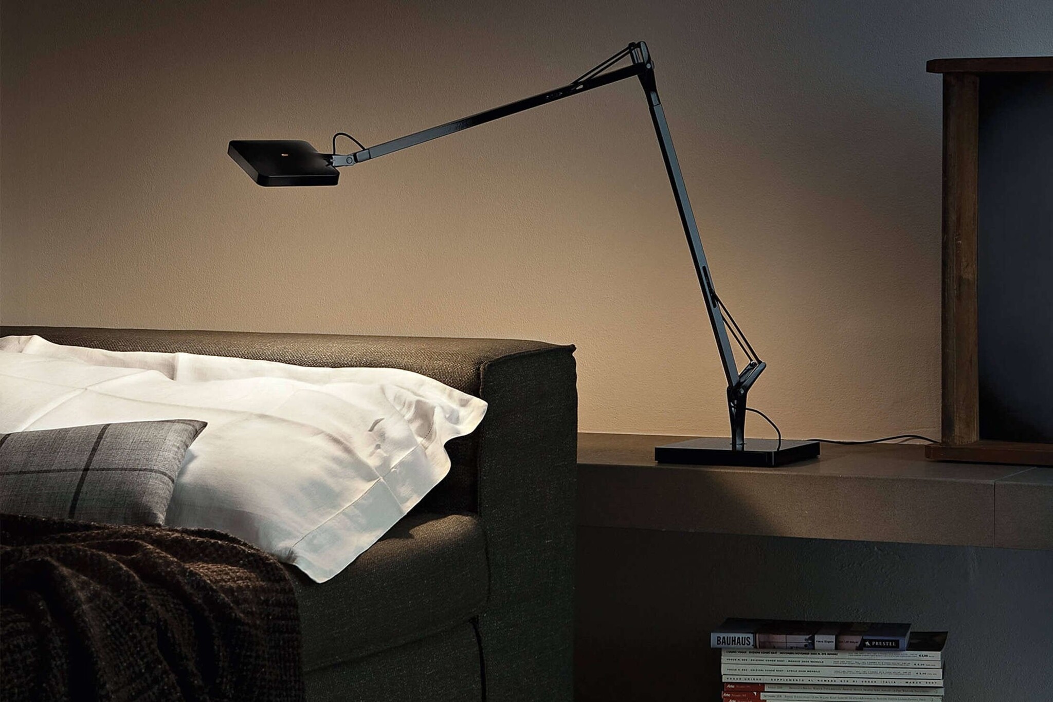 Flos Kelvin Edge een bescheiden tafellamp ontwerp. Gebruiksgemak, ontwerp, design en functionaliteit kenmerken de Kelvin Led verlichting. De lamp dompelt het bureau in een gelijkmatig en niet verblindend licht en zorg daarmee voor een perfecte lichtoplossing voor prettig werken. Door de klassieke, dubbel verstelbare pantograafarm kan de lichtbron worden afgesteld. De lamp is leverbaar in glanzend zwart, glanzend wit of in een mat grijzen variant. De voet en zwenkarm zijn gemaakt van aluminium en perfect afgewerkt.
