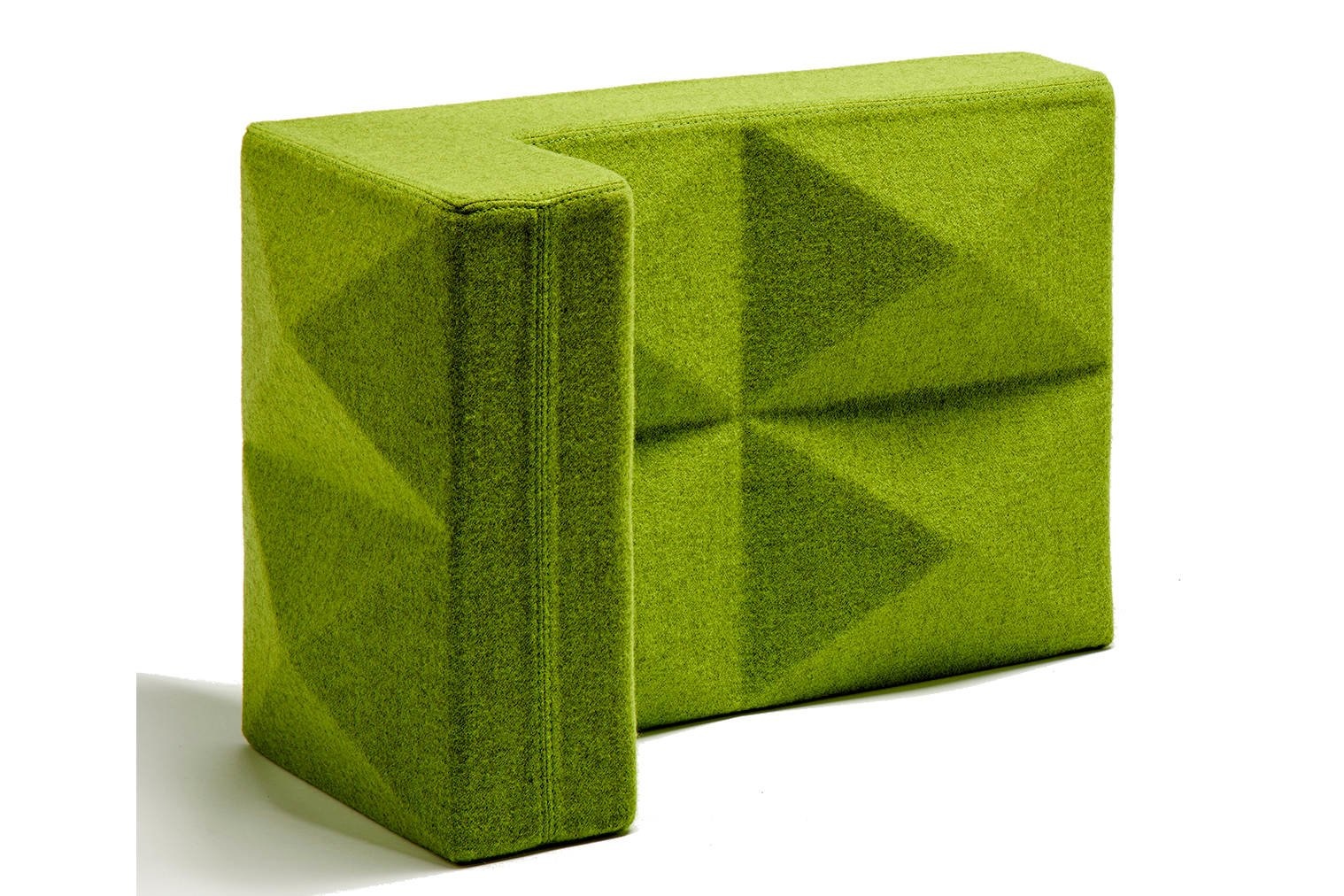 Foamfabrics Fabricks akoestische oplossing Fabricks zijn bouwstenen gemaakt van hoogwaardig akoestisch schuim en stof. Ze zijn ontworpen om een ruimte visueel aantrekkelijk te maken en ook om ruimtes te verdelen en geluidshinder tegen te gaan. Met Fabricks is het namelijk makkelijk om snel een muur te bouwen voor ontmoetingsplekken of individuele werkplekken. Het concept is ontworpen om eenvoudig en snel op te bouwen en af te breken. Fabricks wordt ondersteund door middel van grondplaten en aluminium palen. De blokken worden hier opgeschoven.