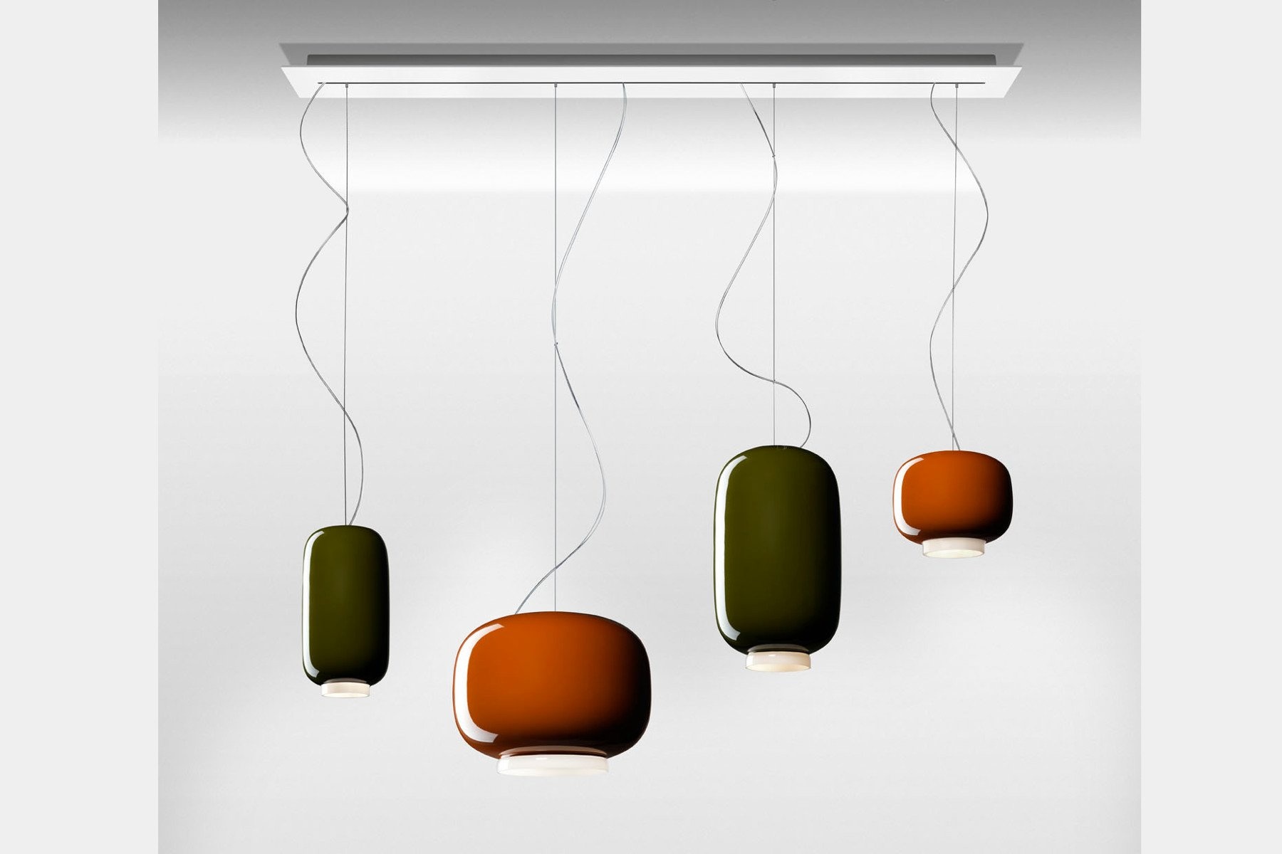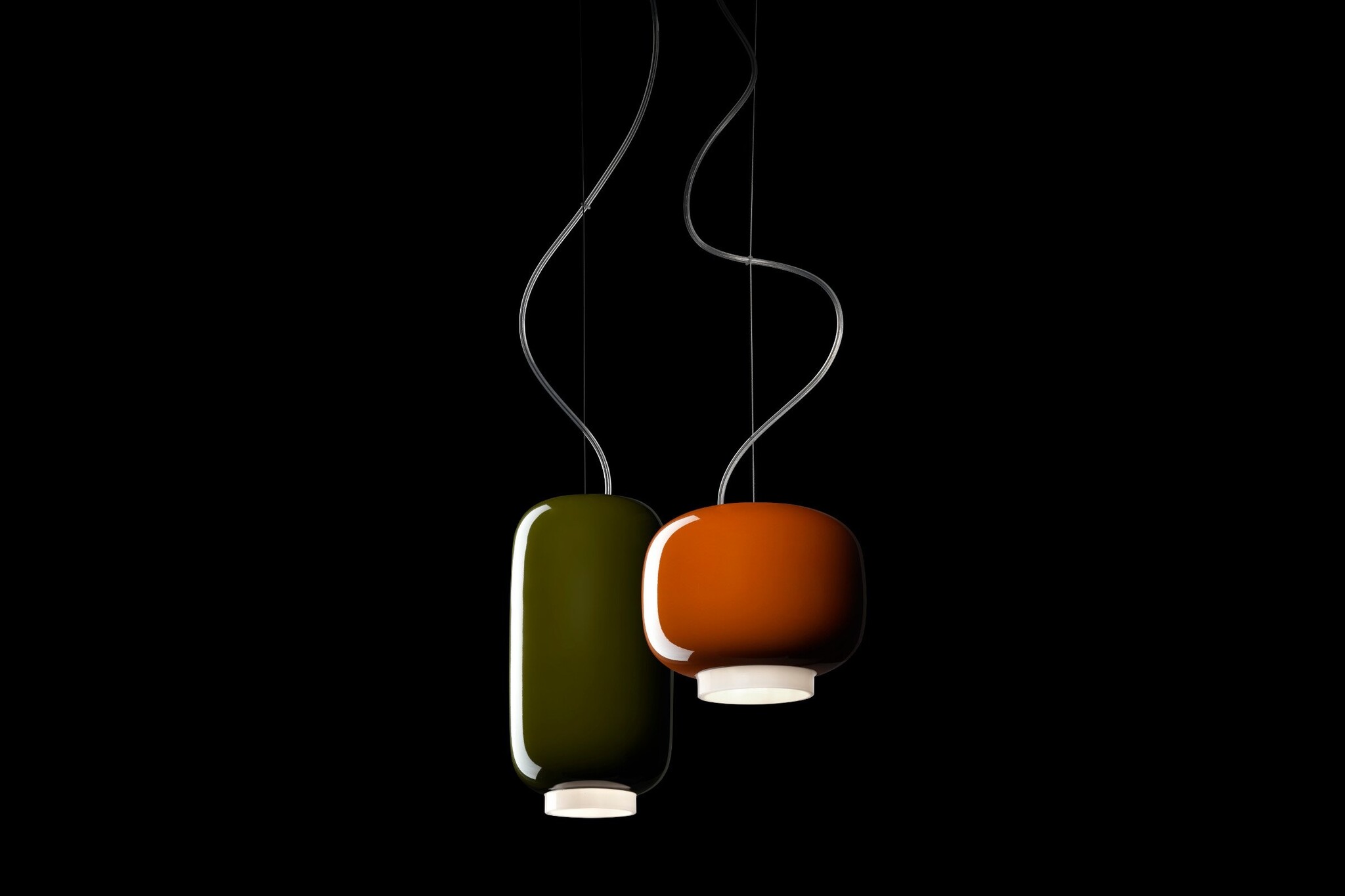 Foscarini Chouchin plafondlamp Foscarini Chouchin plafondlamp is ontworpen door Ionna Vautrin. De Foscarini lamp is gemaakt van speciaal geblazen glas en wordt geleverd met een snoer van 2 of 5 meter. De lamp is leverbaar in twee kleuren; oranje en grijs. De Chouchin is verkrijgbaar in 2 maten, de Chouchin en de Chouchin Mini.