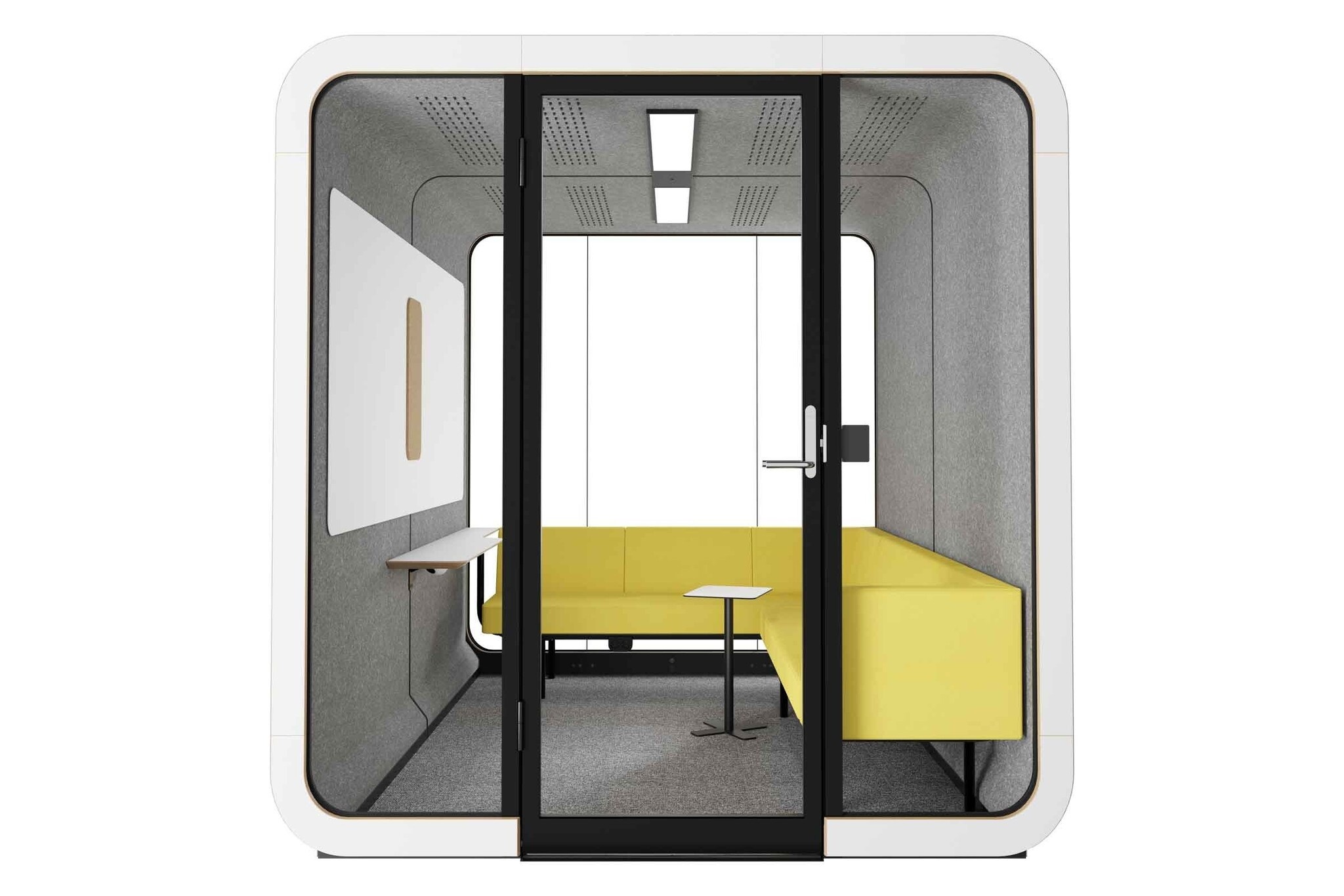 De Framery 2Q is een akoestische ruimte en is ontworpen voor 4 tot 6 personen. Deze ruimte is ideaal geschikt om te brainstormen of om vergaderingen te houden. Het superieure geluidsisolatiesysteem zorgt ervoor dat uw vergaderingen de rest van het kantoor niet storen en, ook niet geheel onbelangrijk, het kantoorgeluid zal u niet storen. Je kunt de Framery 2Q kiezen zonder meubels, waardoor je de mogelijkheid hebt om het meubilair naar eigen inzicht in te delen. De uitstekende geluidsisolatie zorgt ervoor dat u en uw team totale geluidsprivacy hebben en de instelbare luchtstroom zorgt voor een aangename sfeer om in te werken. Kenmerken van de Framery 2Q akoestische ruimte