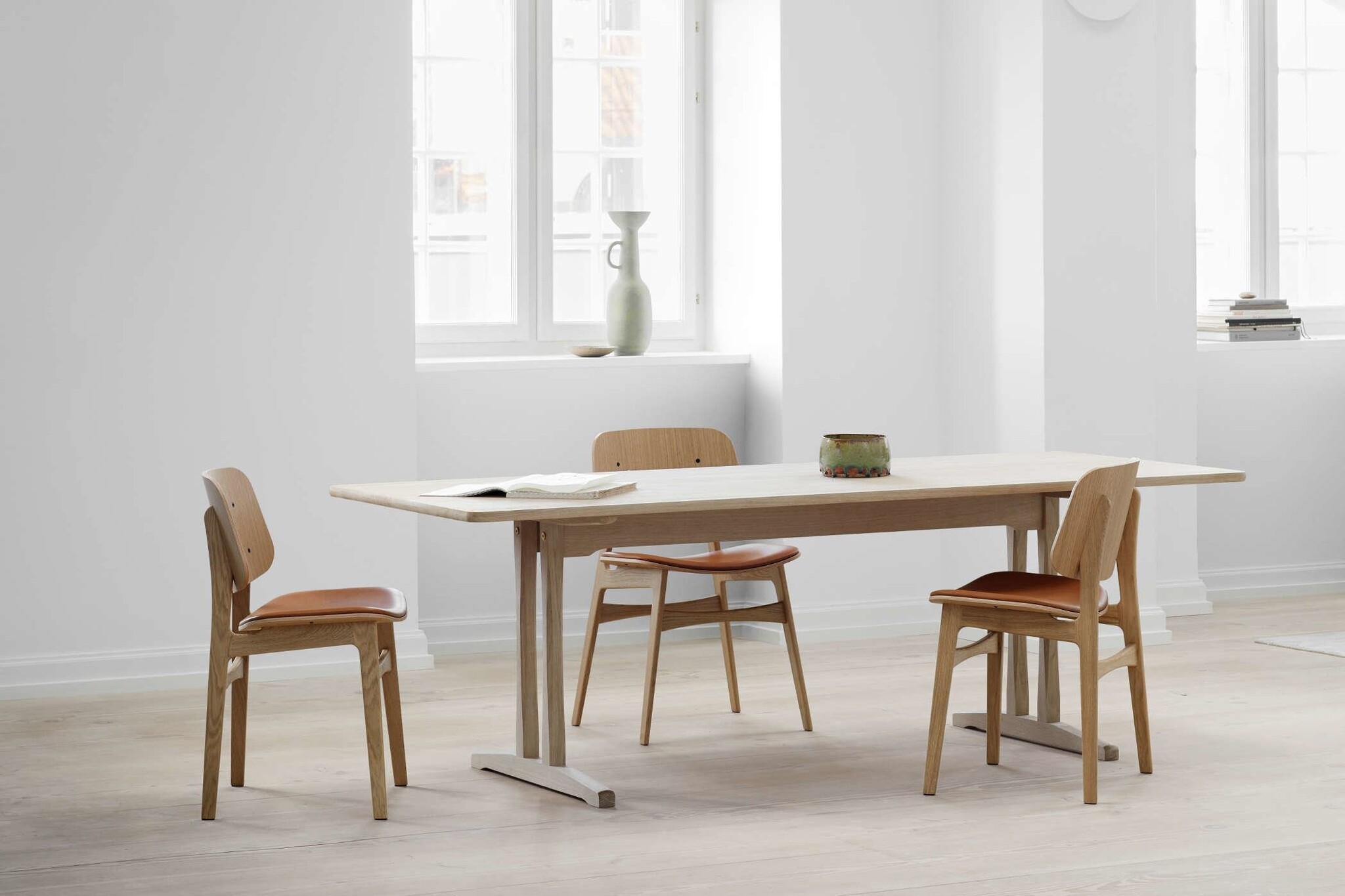 De Fredericia Søborg stoelen zijn echte designklassiekers. De ontwerper Børge Mogensen presenteerde het prototype voor de Søborg-stoel al in 1950. Het was zijn bedoeling om multiplex zitschalen te combineren met massief hout. De royale rugleuning en zitting met optionele bekleding zorgen voor een comfortabele stoel die inzetbaar is in diverse kantoren of in de horeca. Kenmerken van de Fredericia Soborg stoelen