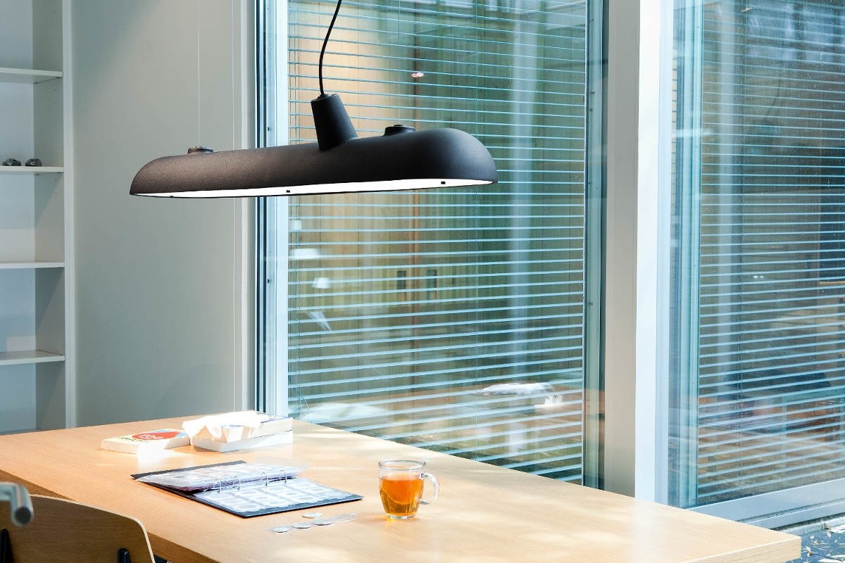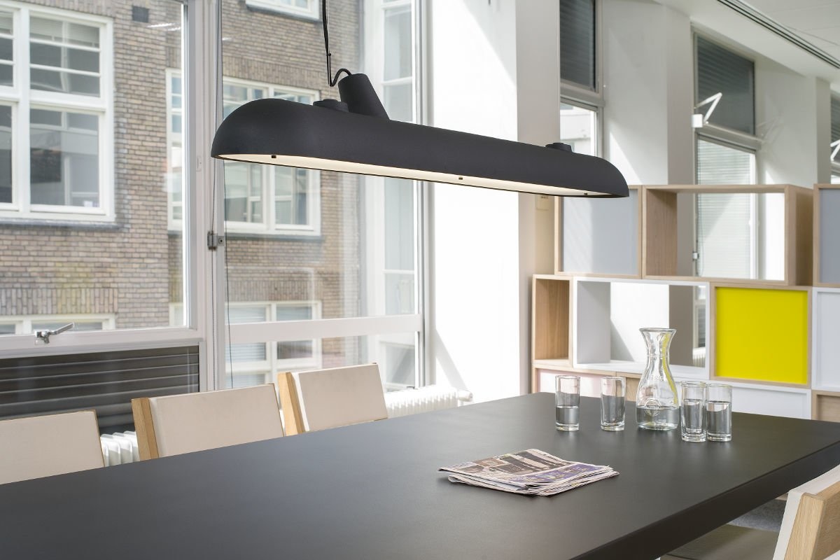 De Functionals Luftschift hanglamp, ontworpen door Kranen & Gille, hangt in de lucht, net als zijn naamgenoot: het luchtschip of zeppelin van de jaren 30 van de vorige eeuw. Het bijna onzichtbare staaldraad houdt onderzeeërvormige, gegoten aluminium body van het plafond, terwijl een zwarte kabel van 295 cm voor de elektra zorgt.De Functionals Luftschiff weegt 11,6 kilo.