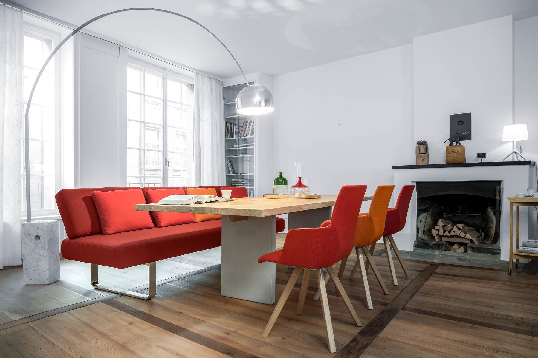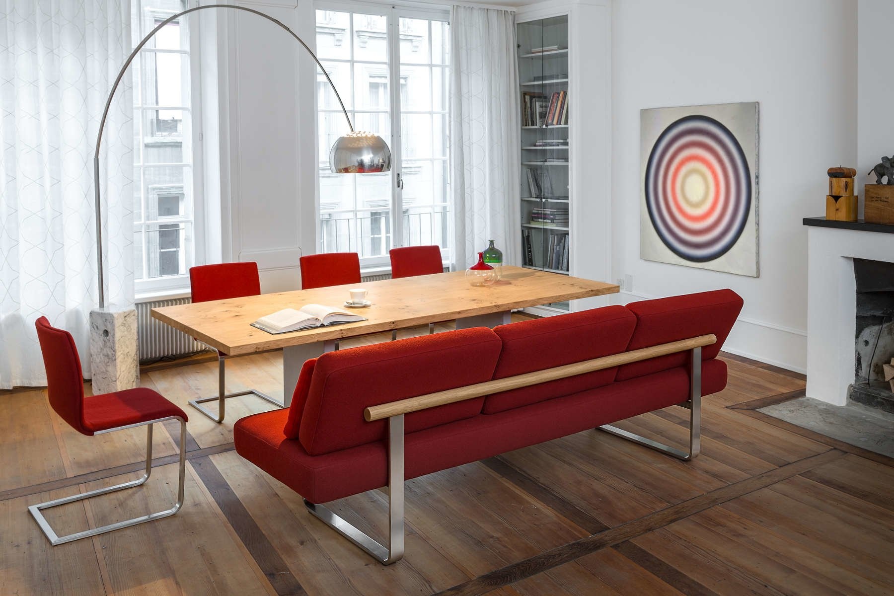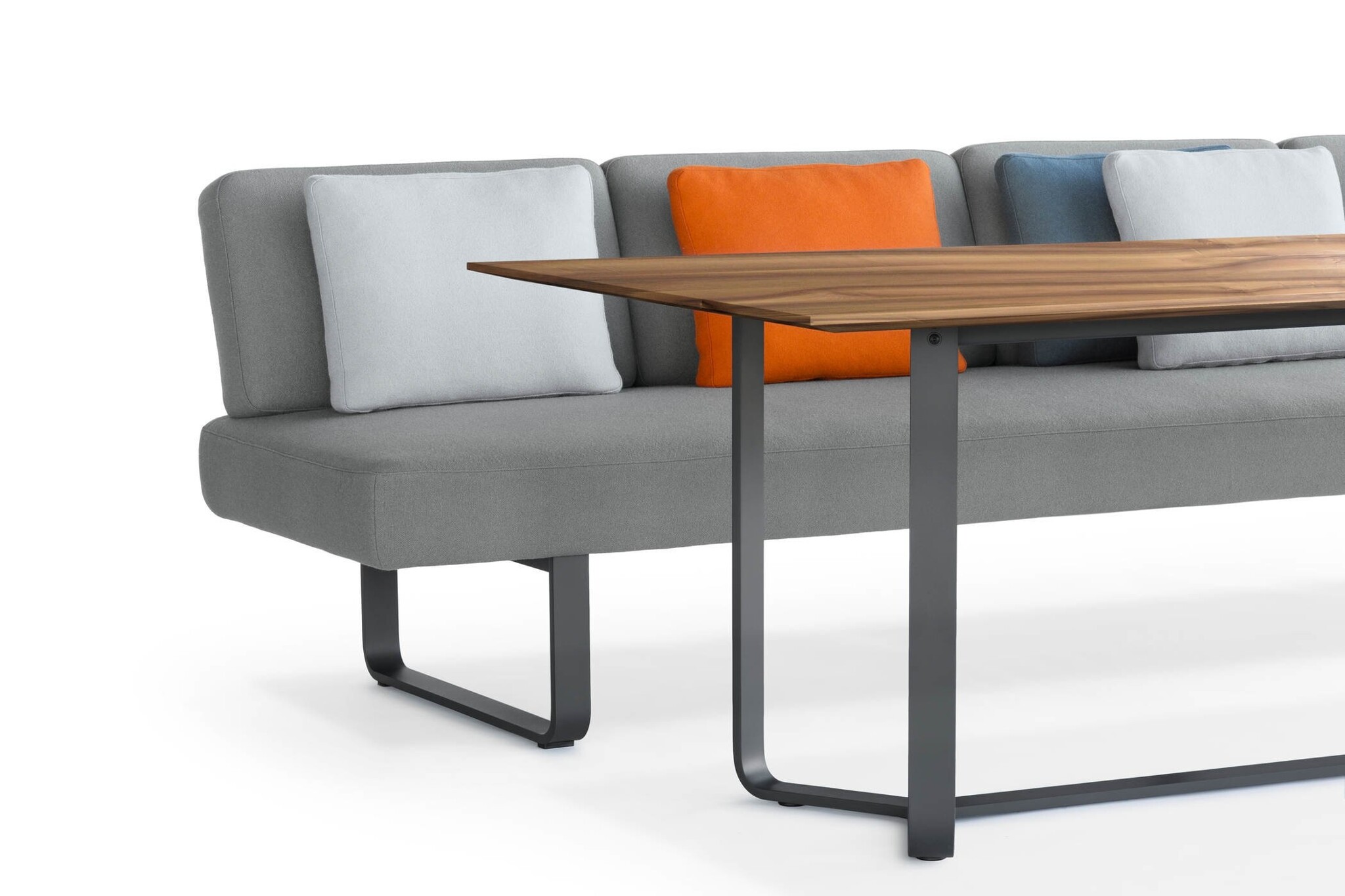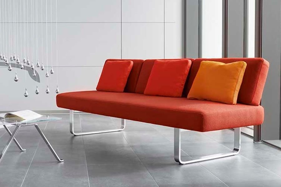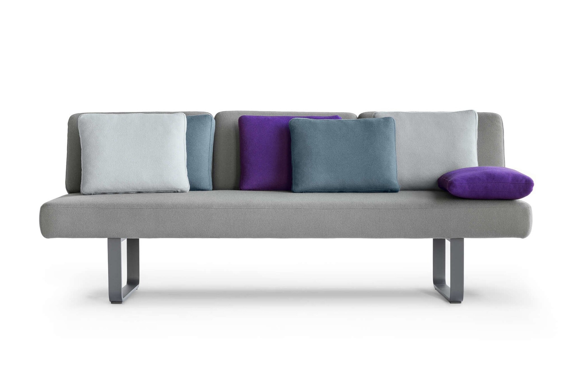 De Girsberger Joline bank maakt zitten buitengewoon comfortabel bijvoorbeeld in een bedrijfsrestaurant of in een vergadering. Uniek aan het design is het houten rug frame, welke niet alleen mooi staat maar ook extra steun geeft aan de rug kussens. De extra losse kussens zorgen voor extra comfort bij het achterover leunen en maken het mogelijk één of meerdere kleurcombinaties te maken.