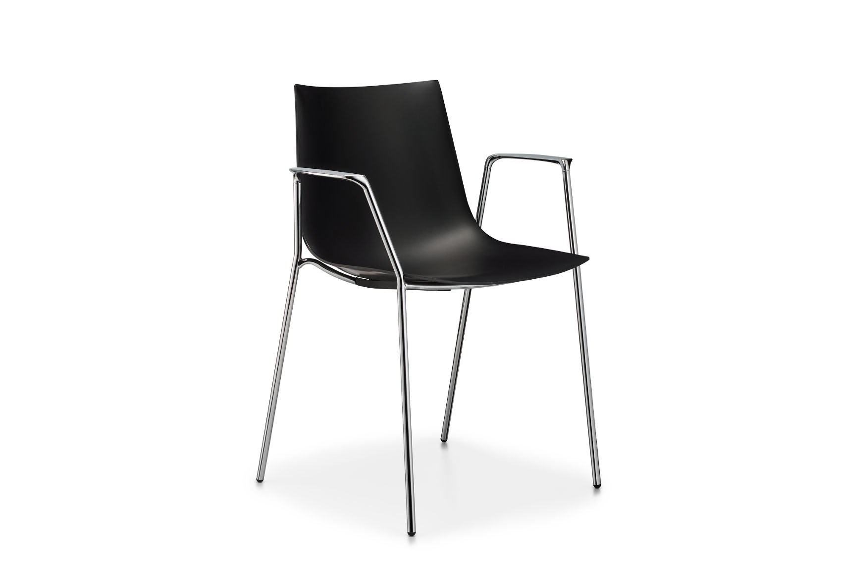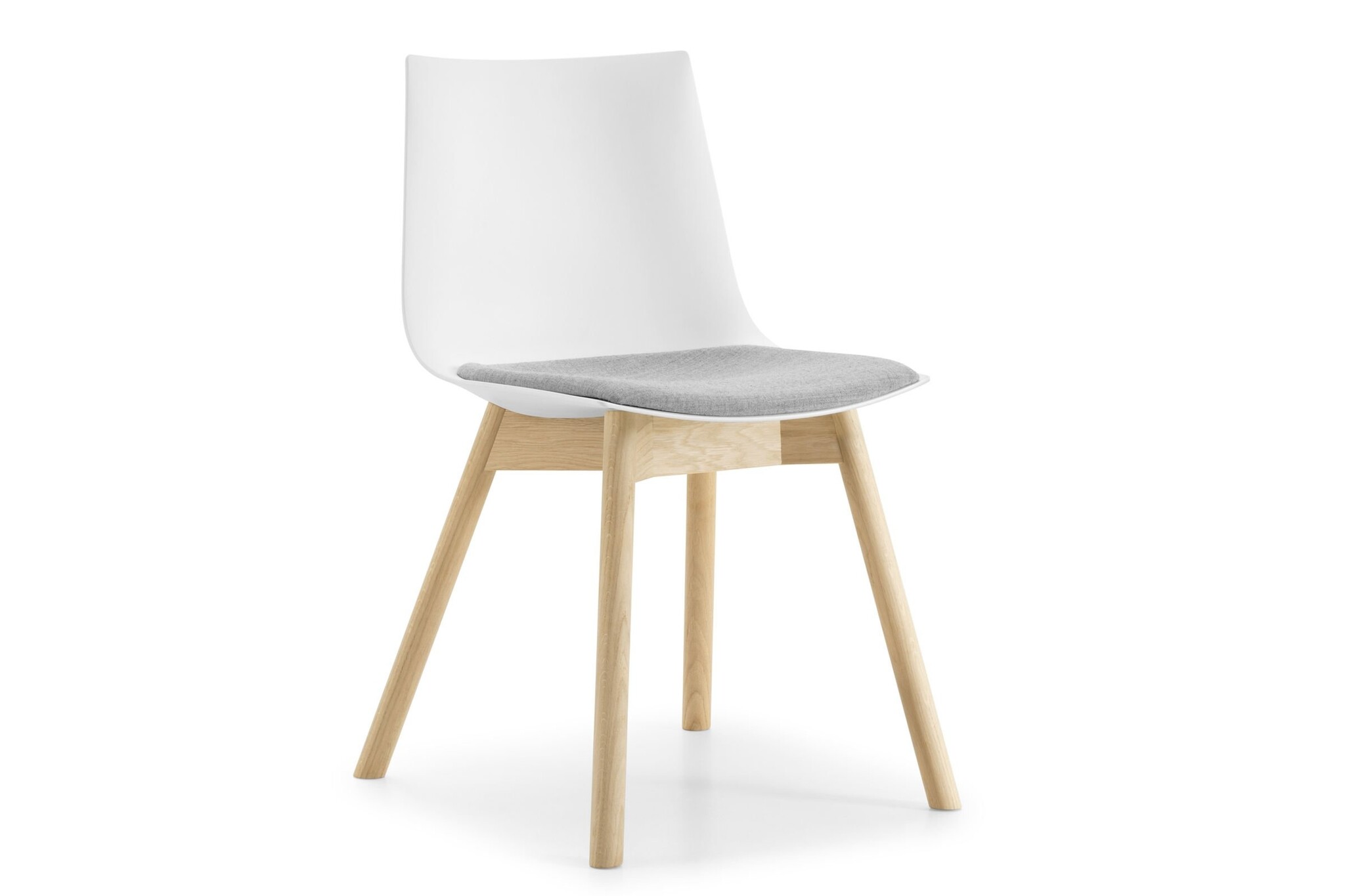 Kunststofschaal, volledig gestoffeerde zitschaal of met enkel gestoffeerde zitting (zowel in stof of leder).
