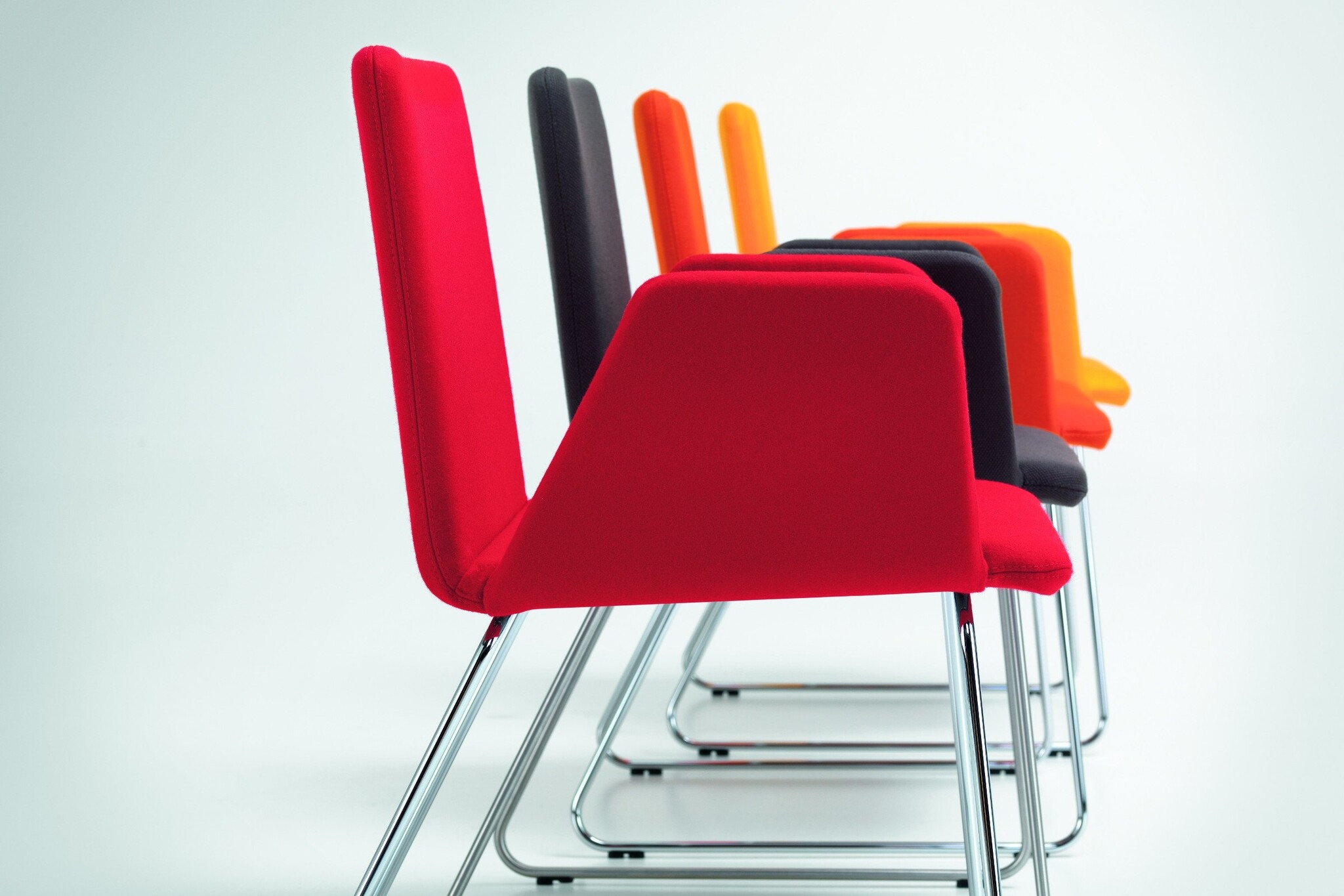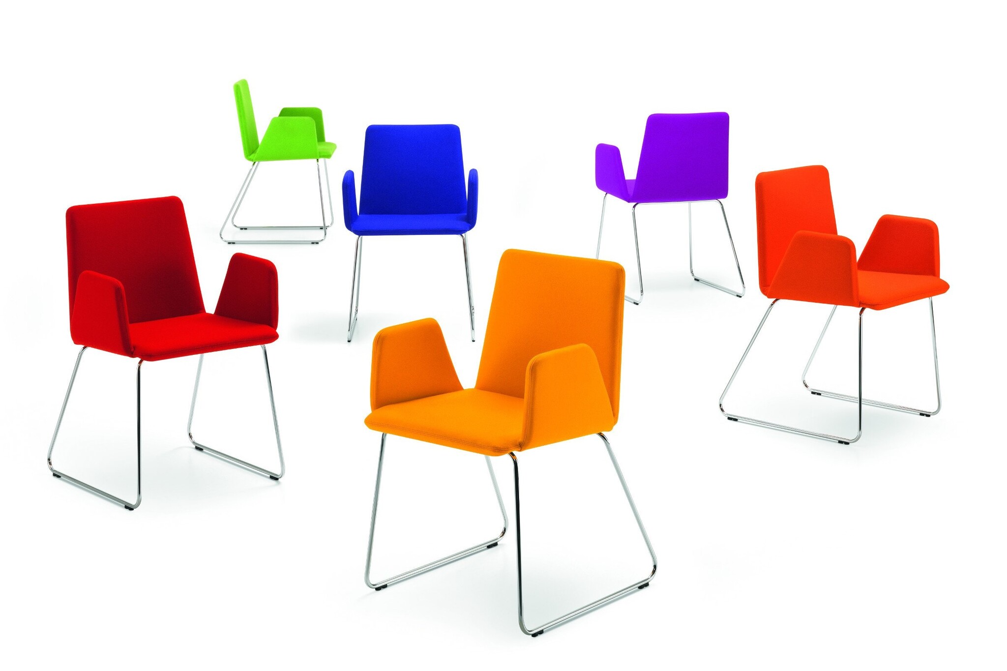 Deze vergaderstoel heeft vele toepassingsmogelijkheden. Het slanke onderstel ondersteunt de schelpvormige zitting. Girsberger Pepe stoel valt op door het eenvoudige design. De zitting, rug en armleuningen worden gevormd door een schaal van multiplex. De zitschaal wordt ondersteunt door een draadframe. Het frame bestaat uit een 12mm dik draadstaal en is verkrijgbaar in verchroomd staal of chroomnikkelstaal. Deze slanke schaal is leverbaar in stof of leer uit de Girsberger stoffen collectie. Girsberger Pepe stoel is geschikt voor diverse ruimtes, van kantoor tot woonkamer.