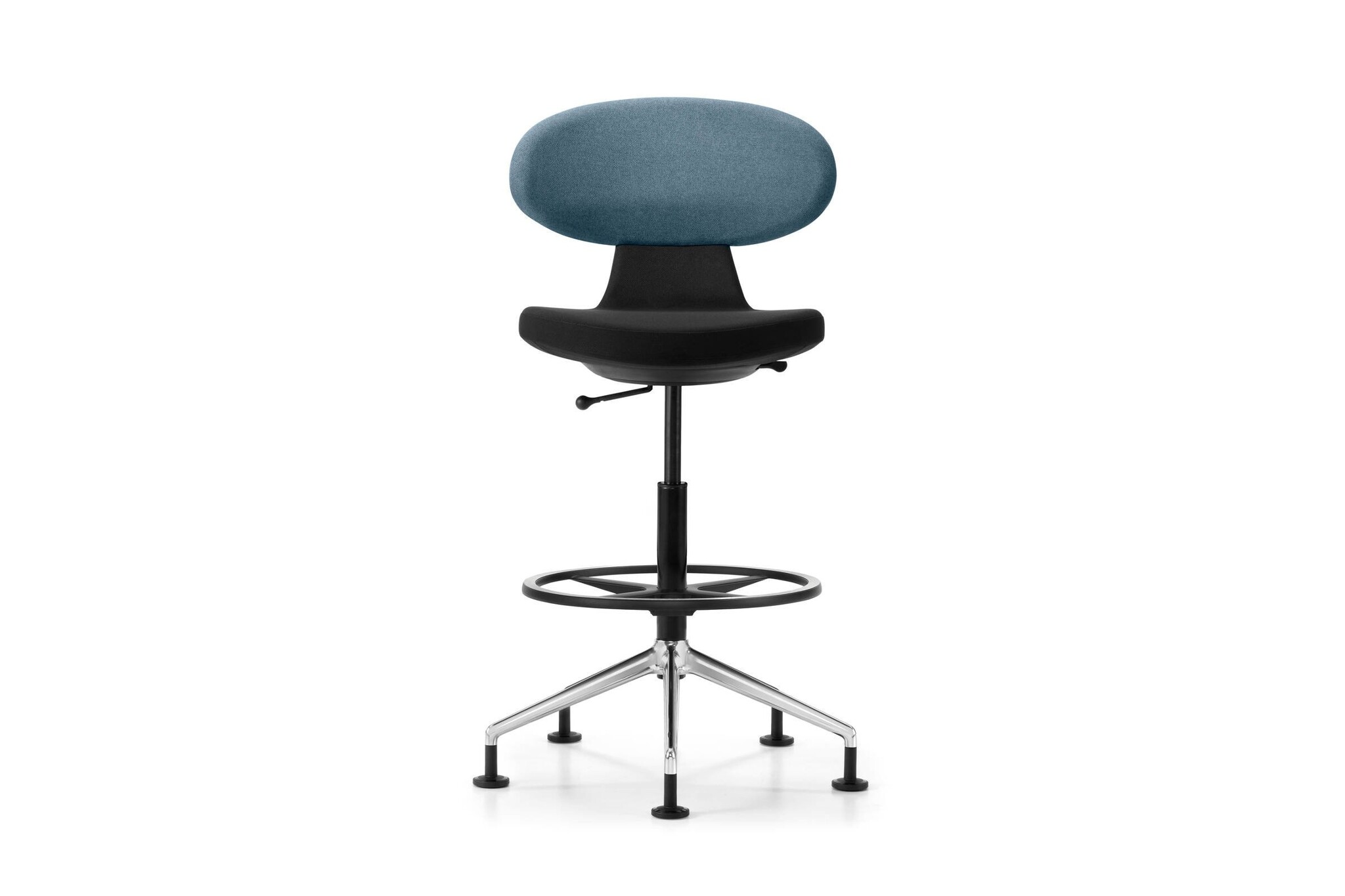 De hoge kruk | kassastoel heeft 2 uitvoeringen: Uitvoering met voetenring en de uitvoering met voetsteun.
