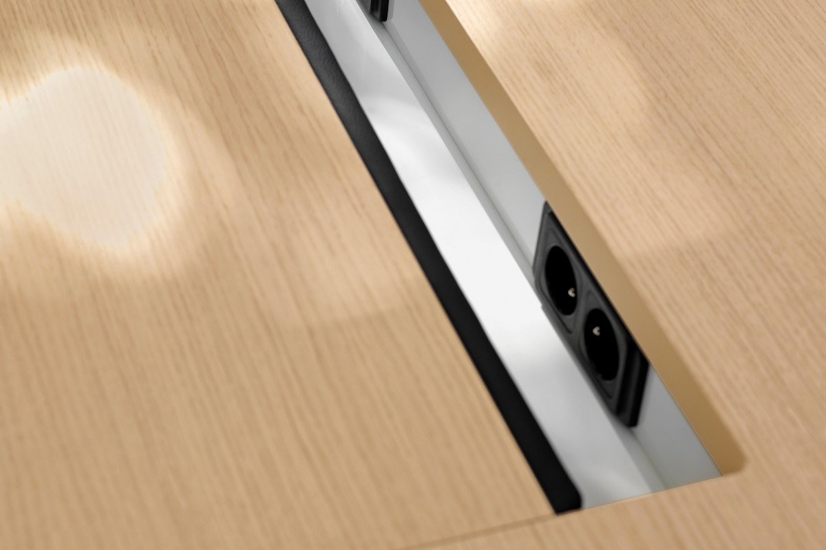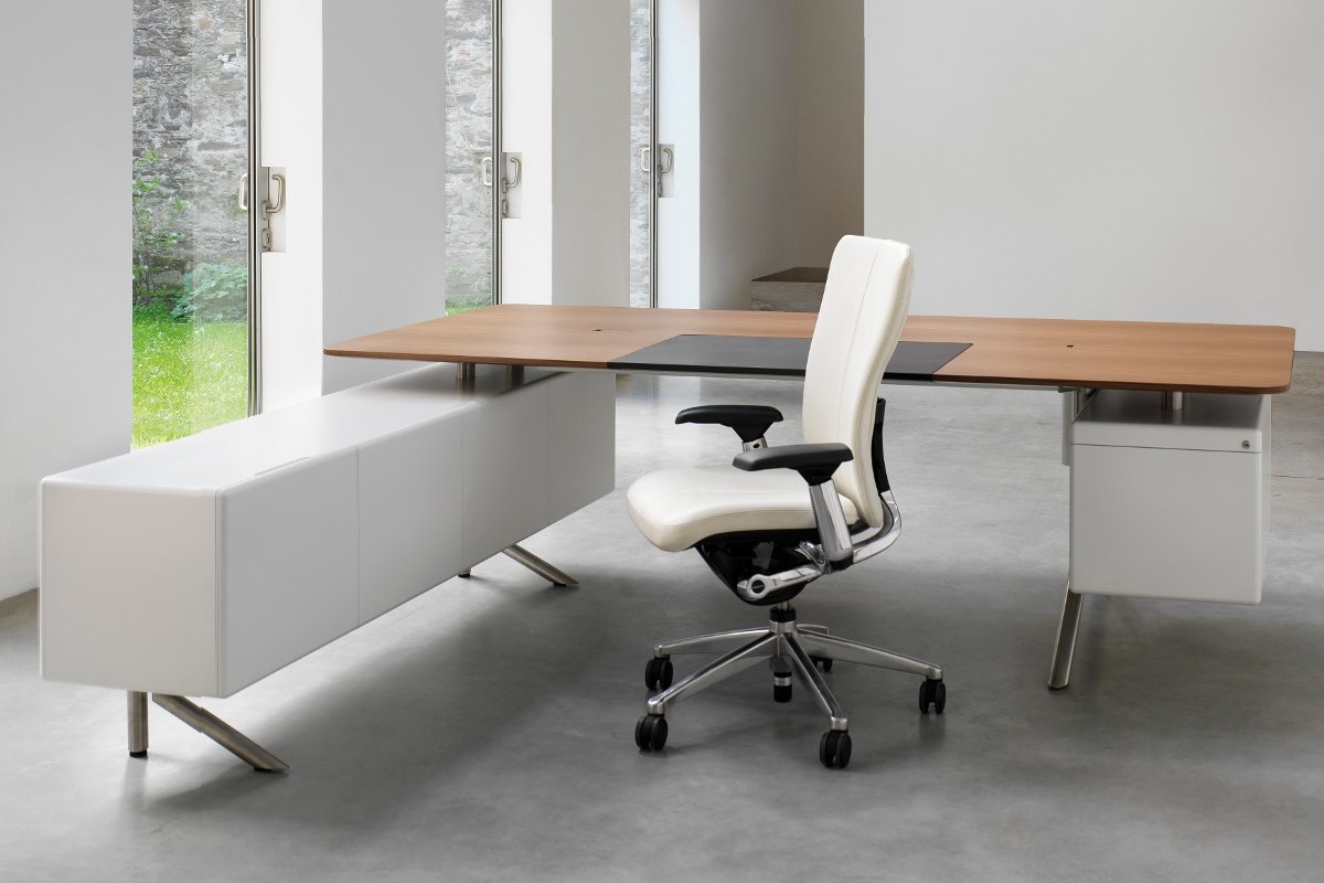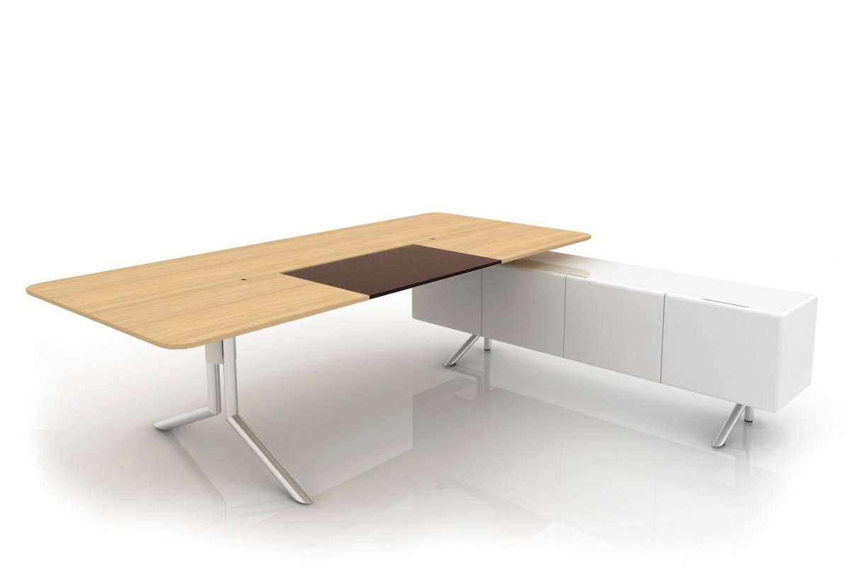 Haworth Audience Executive directiemeubilair is een veelzijdige serie ontworpen door Albert Holz Het vrijstaande bureau staat op ëën of twee ladeblokken. De opbergunits kunnen worden voorzien van een projector die onverwachte- of vertrouwelijke vergaderingen mogelijk maken in de vertrouwde kantooromgeving.