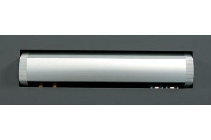 Kabelmanagement systeem rotation II, van geanodiseerd aluminium. bestaande uit 3 x 230 V + 2-voudig RJ 45, vlak in tafelblad verwerkt.