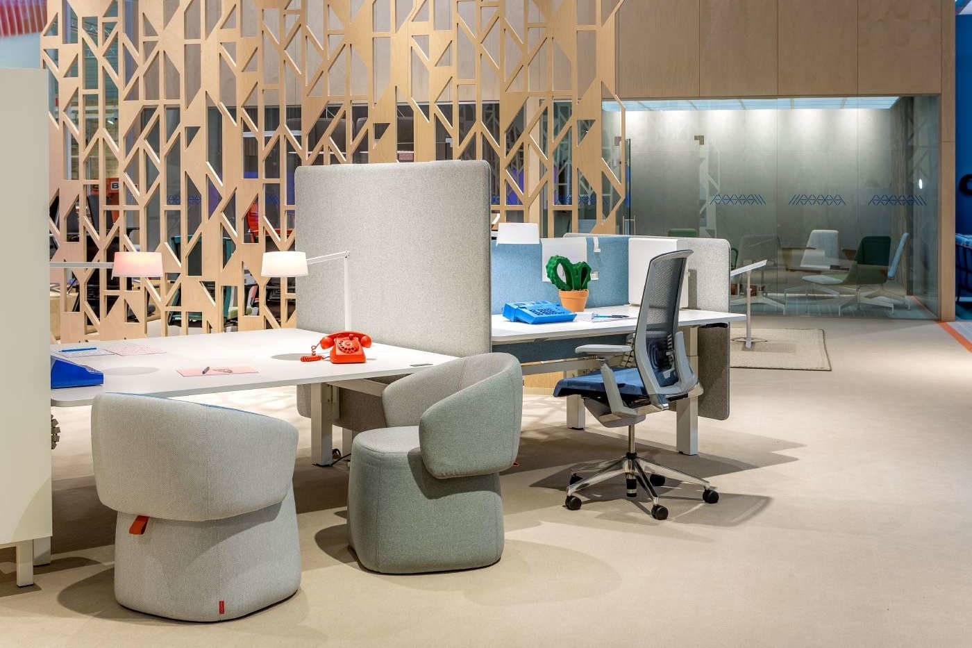 Het Haworth YourPlace bureausysteem is ontworpen om de individualiteit van de gebruiker weer te geven door speels met kleuren van de akoestische schermen te spelen Voor elk wat wils