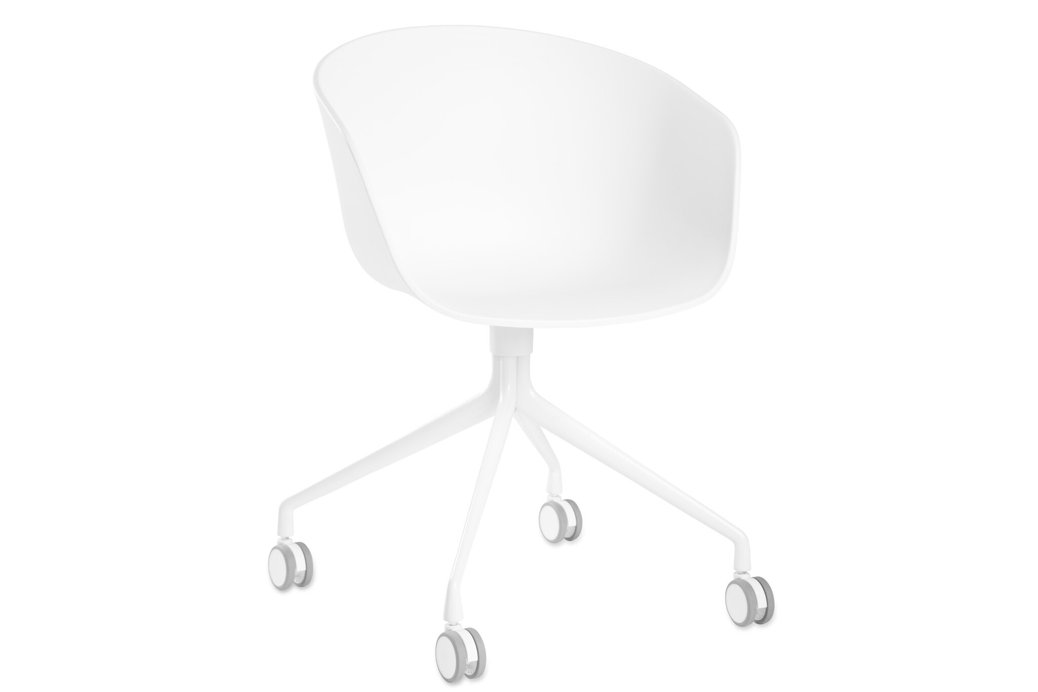 Hay AAC24: kunststof zitschaal, armleuningen, draaibare stervoet met wielen.